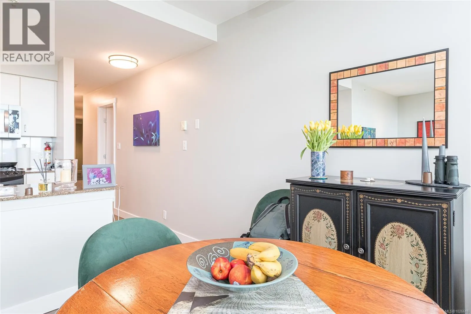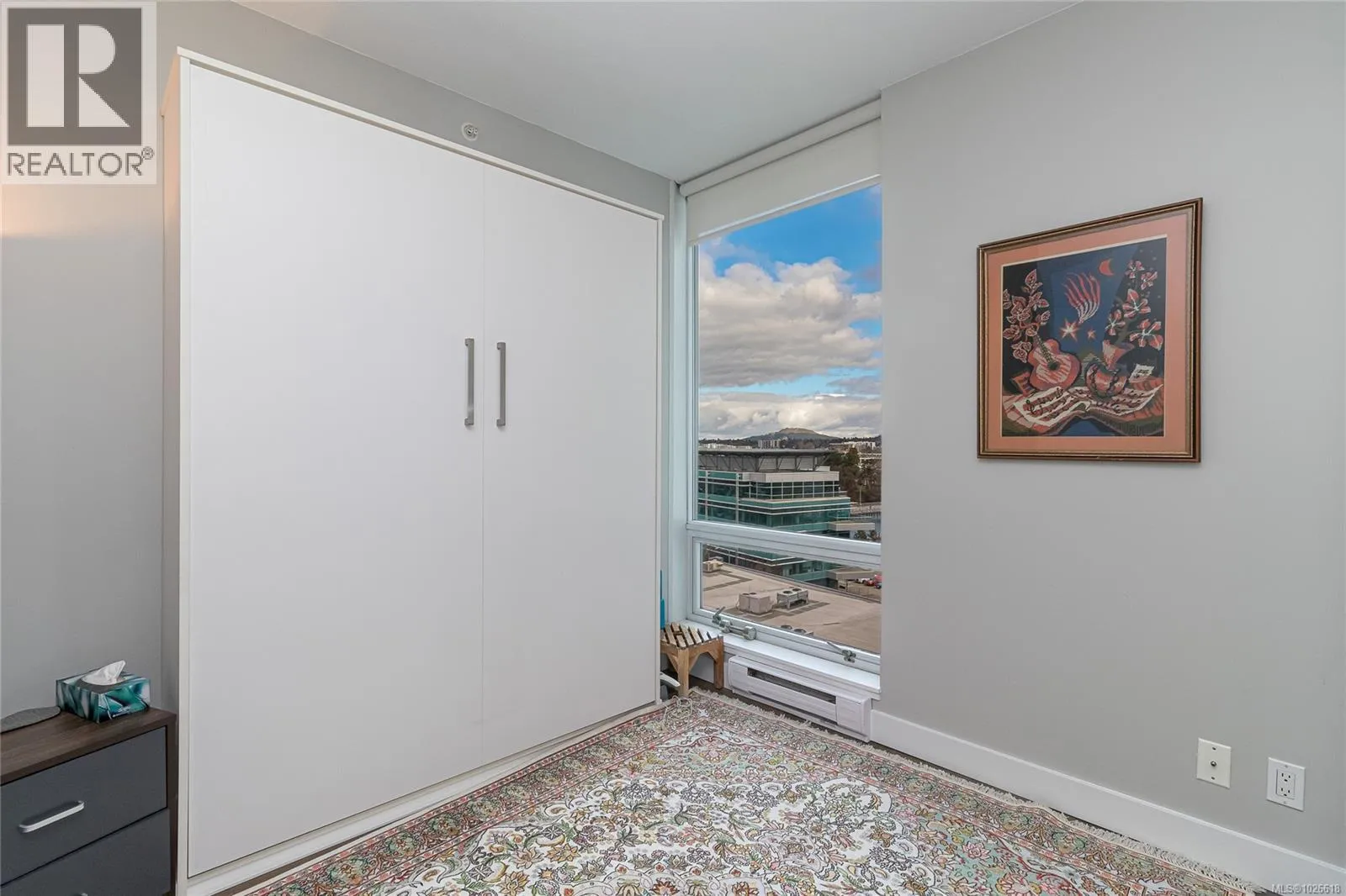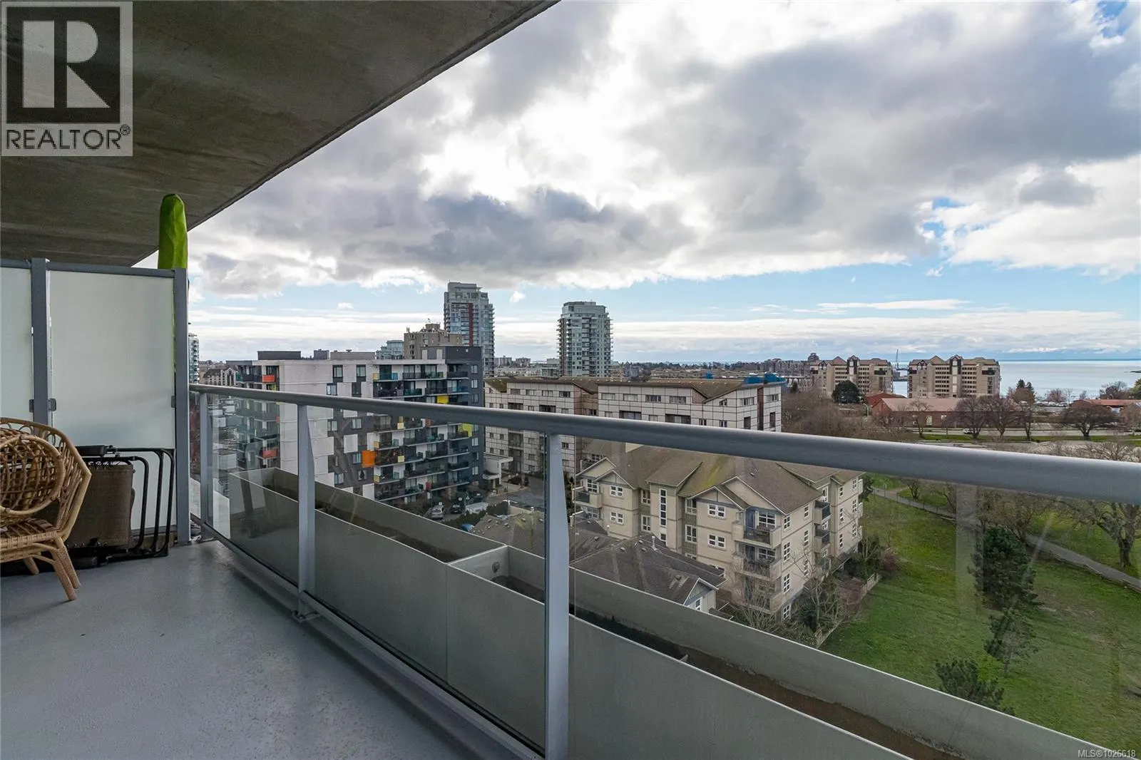 Amazing views from this 10th-floor condo with floor-to-ceiling windows showcasing the ocean and Olympic Mountains from the living, dining, and kitchen areas, while the bedrooms enjoy east-facing city views. This 2-bedroom, 2-bathroom home offers a smart, functional layout with granite countertops, stainless steel appliances, and a gas stove. The living room features a cozy electric fireplace, hardwood floors run through