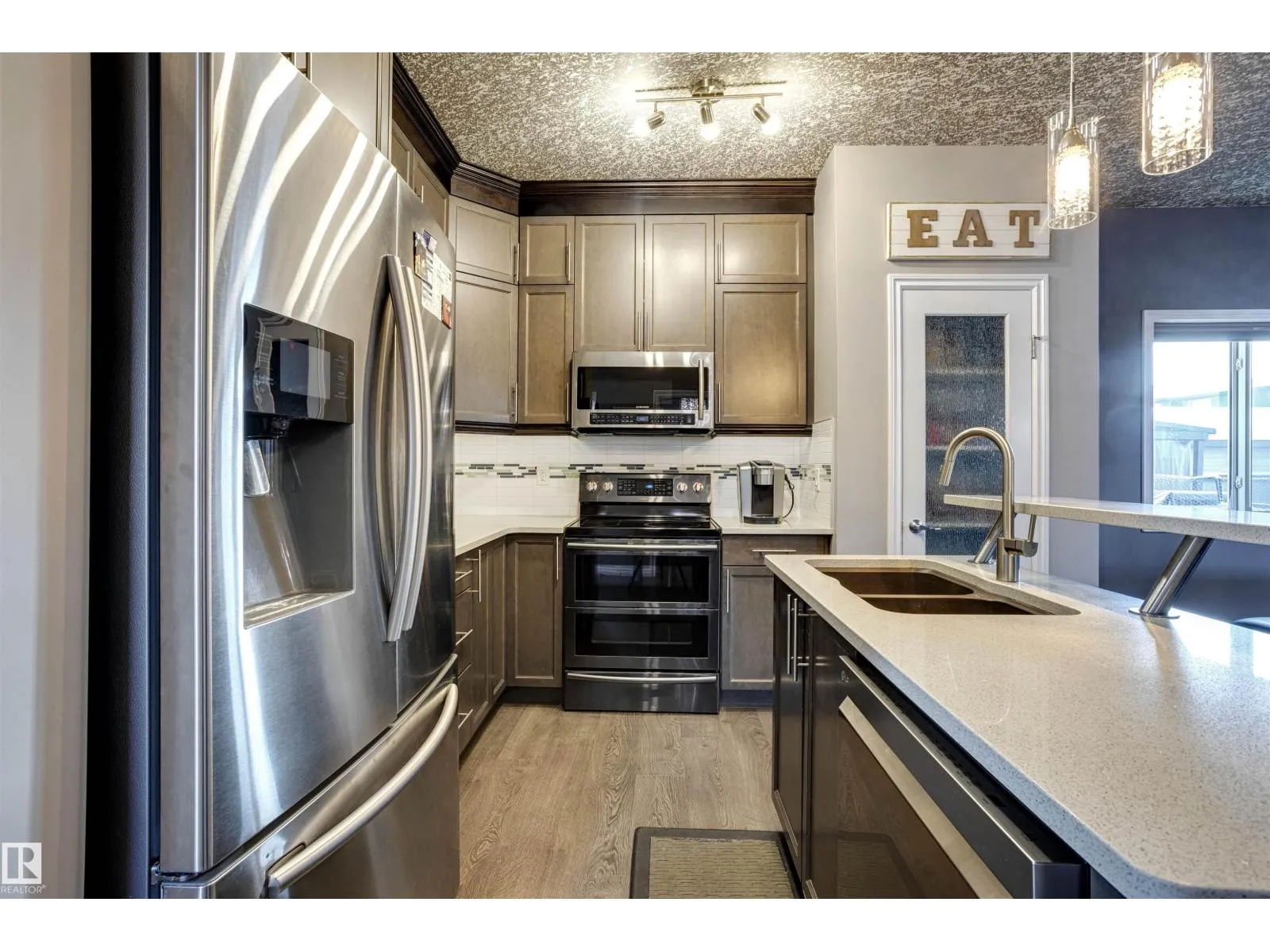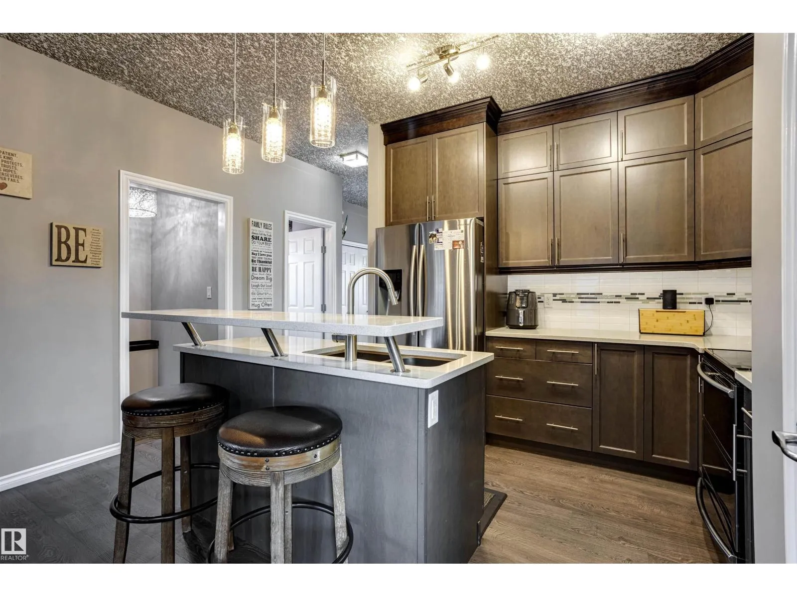 The perfect blend of style, luxury & practicality makes this home a must see! The home has many stylish touches including a beautiful stacked stone wall feature with built-in fireplace. The modern color palette of the open-concept space is enhanced by the 2-tone California knockdown ceilings. The kitchen has classy quartz counters + cabinets that extend all the way to