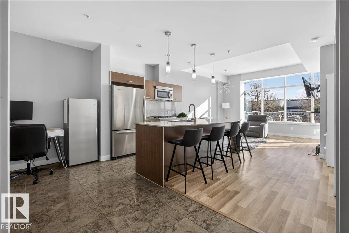 Welcome to Century Park! This concrete building offers excellent sound insulation and is ideally located within walking distance to LRT transit and shopping, and just minutes to South Common. This outstanding 1-bedroom south-facing condo features a bright, open-concept layout with laminate flooring, granite countertops, upgraded cabinets and faucets, KitchenAid stainless steel appliances including a gas stove top with built-in oven,
