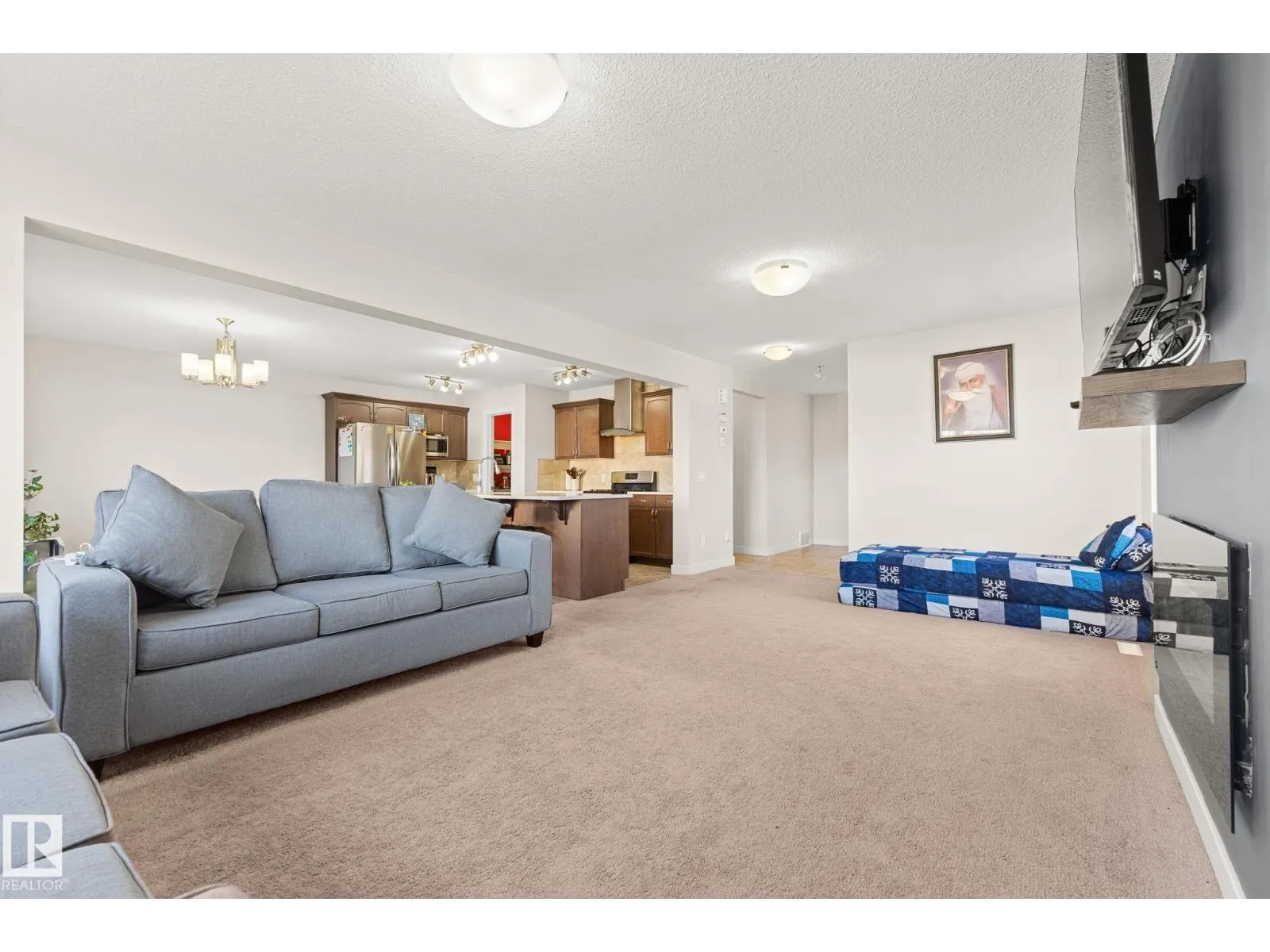 Tucked away in a quiet cul-de-sac in the desirable community of Maple Crest, this impressive 2-storey home offers OVER 2300 SQ FT of well-designed living space with 9 ft ceilings, tons of natural light, and central A/C for year-round comfort. The massive living room features a striking electric fireplace feature wall and flows into the open-concept kitchen with quartz countertops,