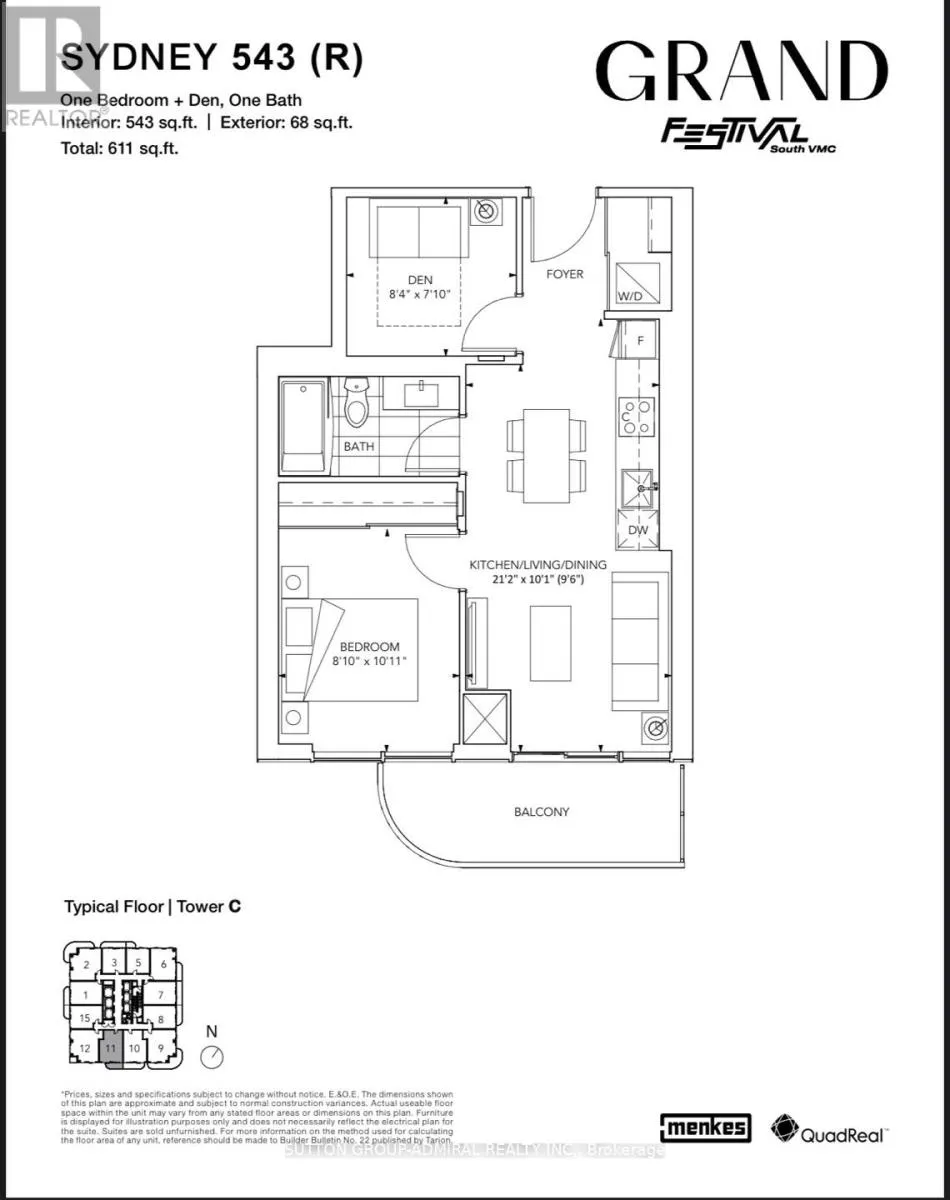 Brand new Luxury 1 Bed + Den, 1 Bath at Grand Festival Condo! Breathtaking Unobstructed South view. Bright Spacious Open-Concept, 9ft Ceiling With Floor-to-Ceiling Windows. Built-in Appliances with Quartz Countertop and Backsplash. Extra Large Bedroom Closet. Den With A Door Can Be Used As Second Bedroom. Prime Location In The Heart of VMC, Steps to Subway, Transit, Hwy400/407, Hospital, Shopping,