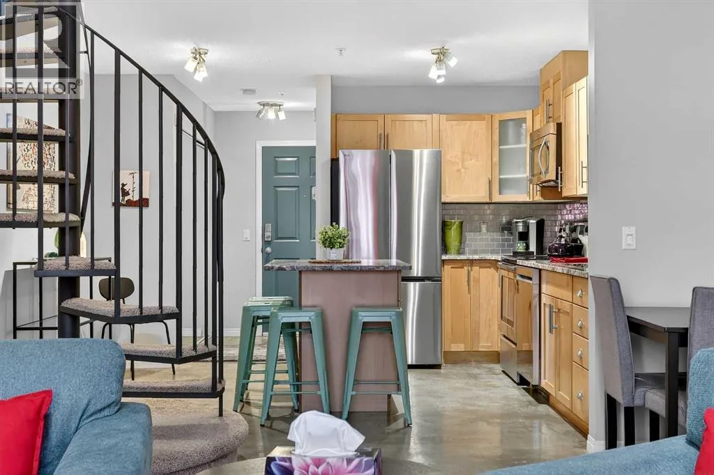 URBAN LOFT living in the heart of coveted MARDA LOOP! This rare, TOP TWO FLOORS, multi-level apartment offers LOADS of SPACE and exceptional STYLE. Step inside the main level to a spacious, OPEN floorplan complete polished concrete floors, 2-pce powder room, massive double closet in large foyer, upgraded kitchen with GRANITE counters, ISLAND with room for stools, STAINLESS STEEL