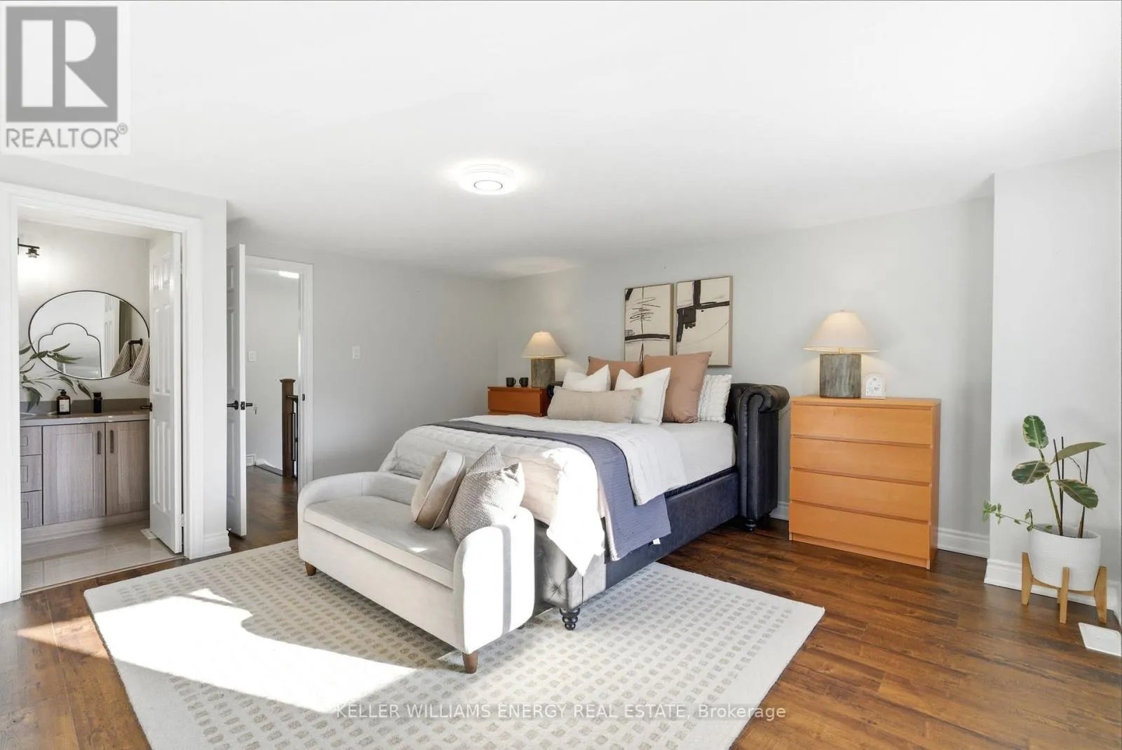 Experience modern living in this stunning all-brick freehold end-unit townhouse offering nearly 1900 sq. ft. of beautifully upgraded living and outdoor space. From the moment you step through the inviting, private, and beautifully landscaped front entrance, you’ll notice the meticulous top-to-bottom renovations, including brand-new hardwood floors, stylish contemporary lighting, and bright open-concept living and dining areas. Designed for both everyday