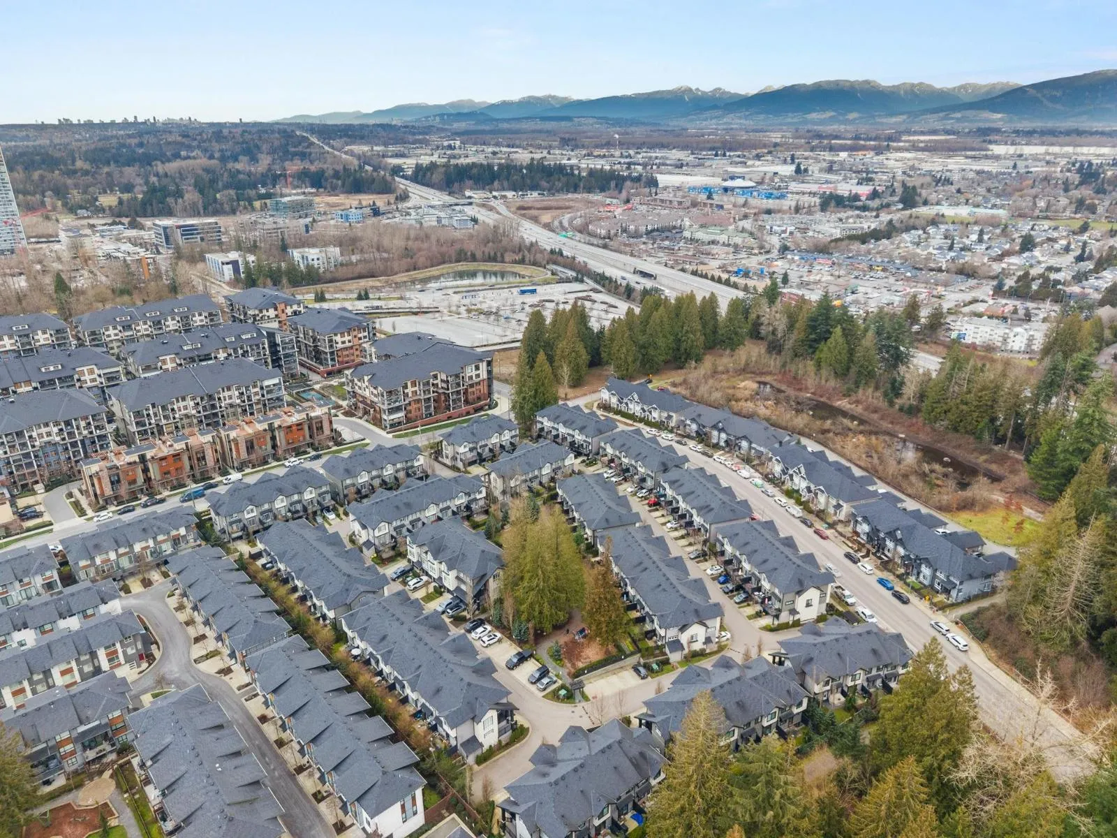 Welcome to Woodland Park, a family friendly community proudly developed by Infinity Properties. This 2 bedroom + den, 2.5 bathroom features an open layout, beautiful quartz countertops, stainless steel gas stove & appliances with the new addition of air conditioning. Nestled in the sought-after community of Willoughby Heights, this home is just two blocks from the Carvolth Bus Exchange offering