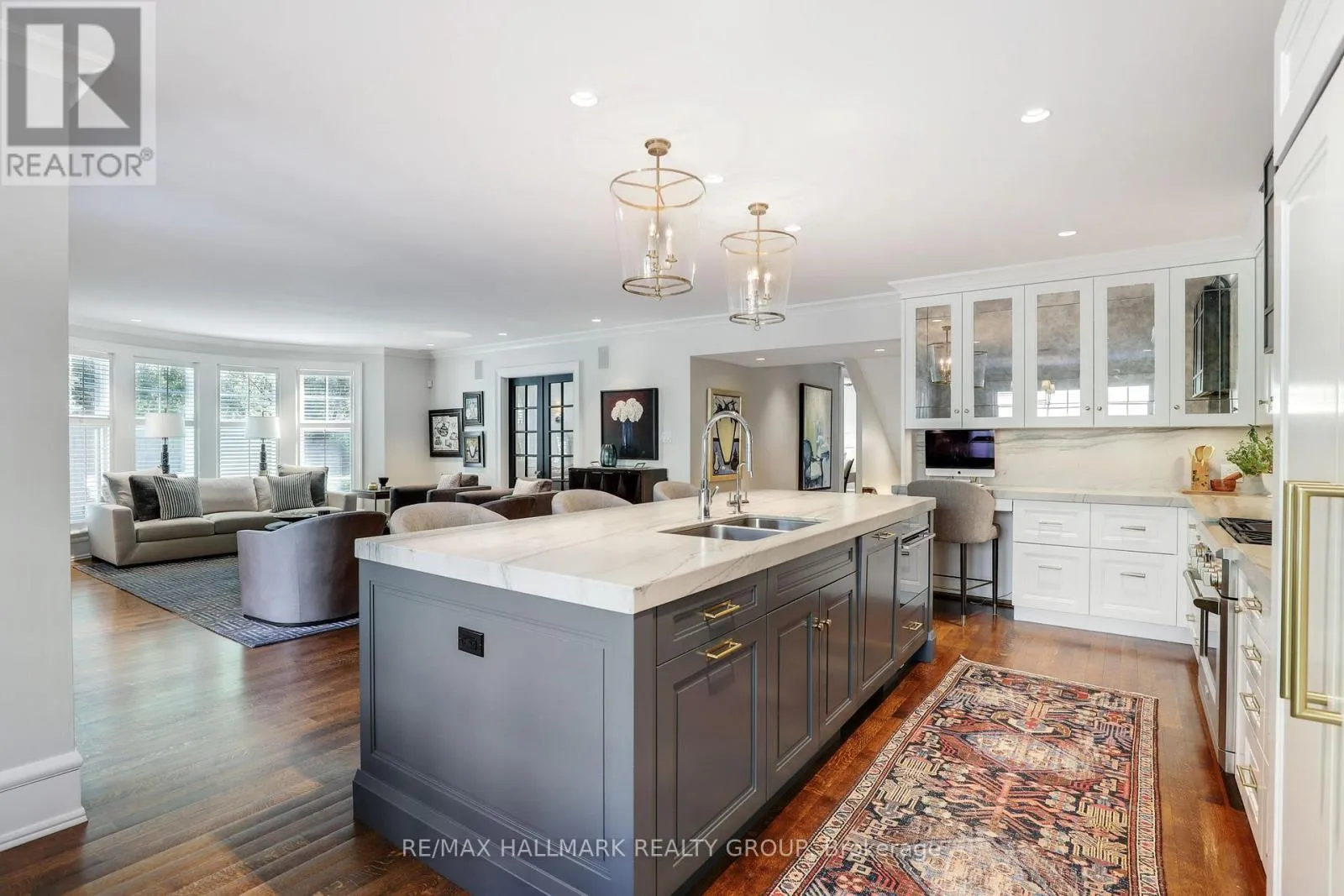 A rare offering in Ottawa’s prestigious Island Park neighbourhood – 525 Piccadilly Avenue is a Barry Hobin designed corner estate with interiors by 2H Design, blending heritage character and modern luxury across four levels. The grand foyer sets the tone with soaring ceilings, rich hardwood, and detailed millwork. Formal living and dining rooms feature original hutches, restored shelving, and a