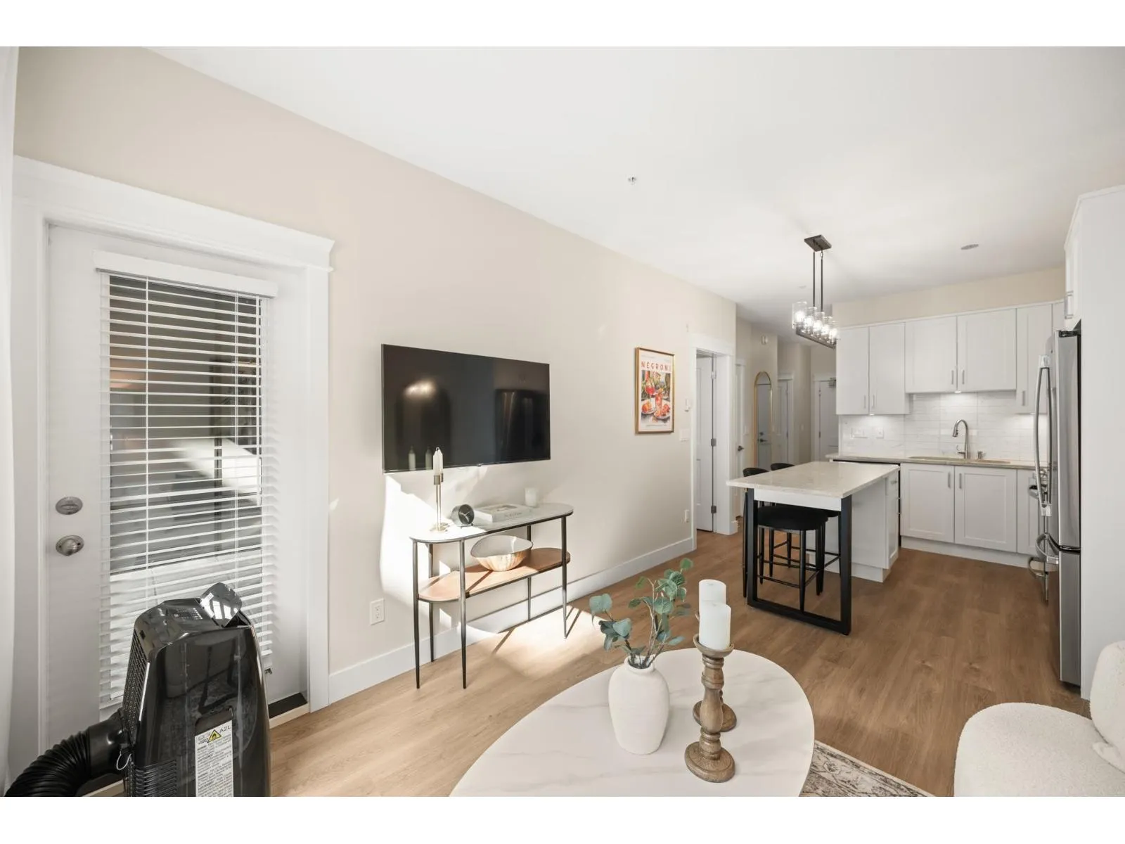 Welcome to Kensington Gate by Quadra Homes!!! This top floor JR 2 Bed 1 Bath unit has 10 foot ceilings, A/C, Stainless Steel appliance package, white quartz countertops, white shaker cabinets, vinyl-plank floors throughout (heated tile floors in the bathroom), built in closet organizers, built in safe, HUGE storage locker and 1 parking stall! Strata fees include natural