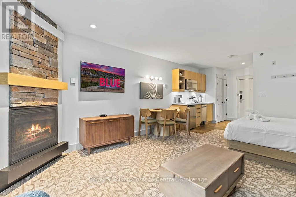 NEWLY REFURBISHED MOSAIC BACHELOR RESORT CONDOMINIUM – Located at the base of the ski slopes in Ontario’s most popular four-season resort; Blue Mountain Village, this luxurious suite sleeps 4 (queen bed and pull-out couch) and is being sold fully furnished. This freshly refurbished gorgeous resort condominium is equipped with a full kitchenette with two stove-top burners and makes the suite