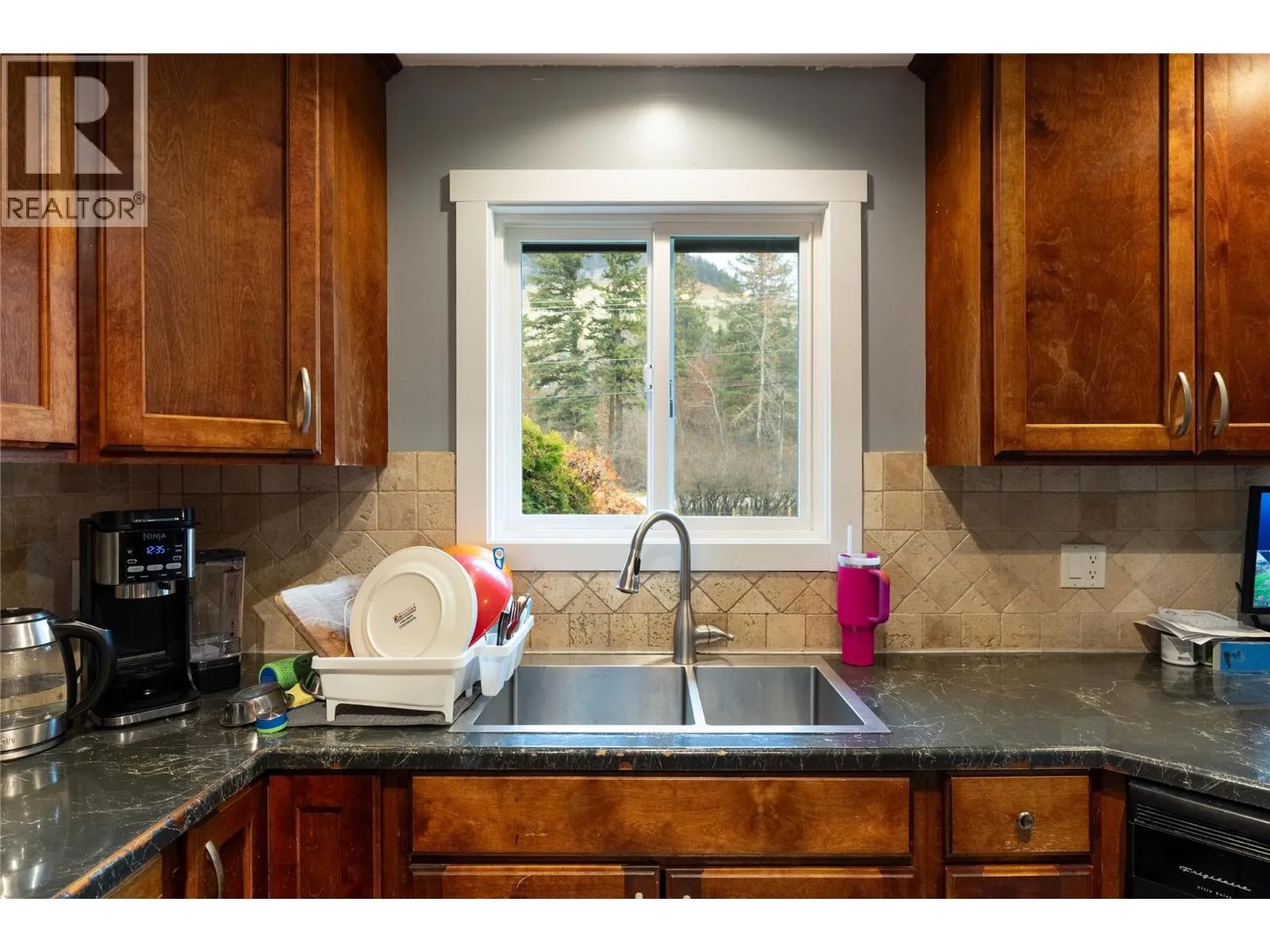 Discover the perfect blend of family living and rural charm on this beautifully fenced 1 plus acre property in the desirable community of Lavington. The main floor welcomes you with an open kitchen featuring a large island, seamlessly connected to the living room, highlighted by a custom feature wall with electric fireplace. The primary bedroom, a second bedroom, and spacious
