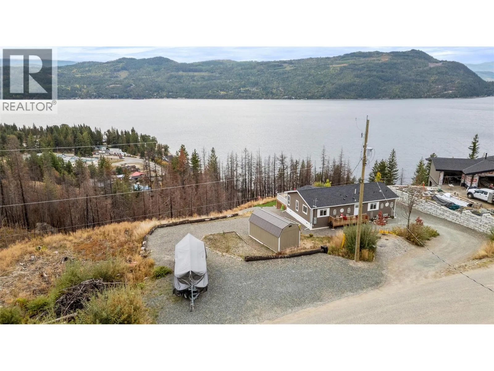 Welcome to this stunning 2024 Cornerstone Modular Home in Celista, offering panoramic views of Shuswap Lake and the surrounding mountains. Thoughtfully designed for both comfort and lifestyle, this 2-bedroom, 2-bathroom home features an open-concept floor plan with high ceilings and quality 2×6 construction. A dedicated office provides flexibility and could easily be converted into a third bedroom if needed. Outdoor