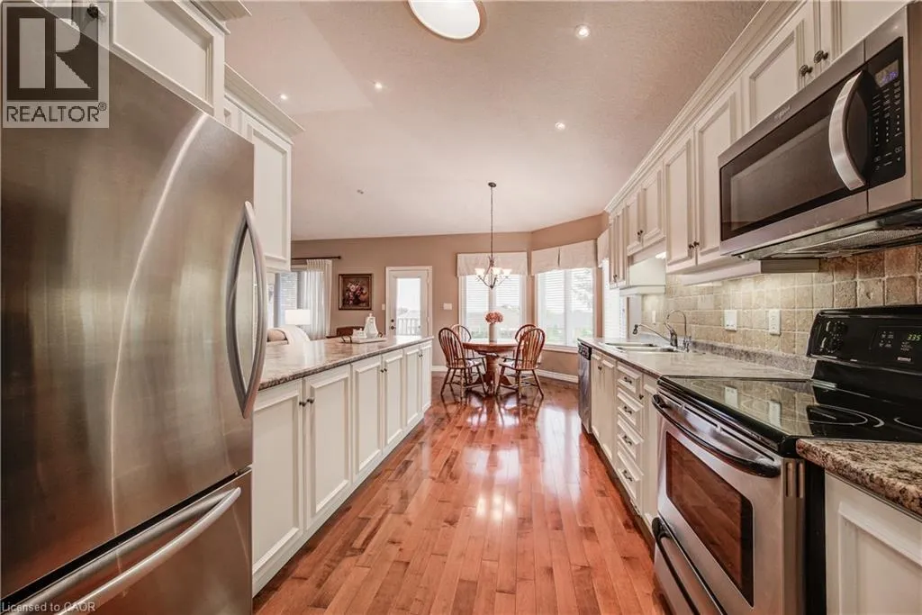 Discover the allure of 116 Stonecroft Way, a beautifully appointed brick bungalow in Stonecroft, New Hamburg’s esteemed adult lifestylecommunity. This home offers the best of both worlds: exceptional privacy on a large, mature lot, combined with immediate access to thecommunity’s impressive amenities. Step inside to an inviting open-concept living and dining area, adorned with gleaming hardwood floors. Themain level provides