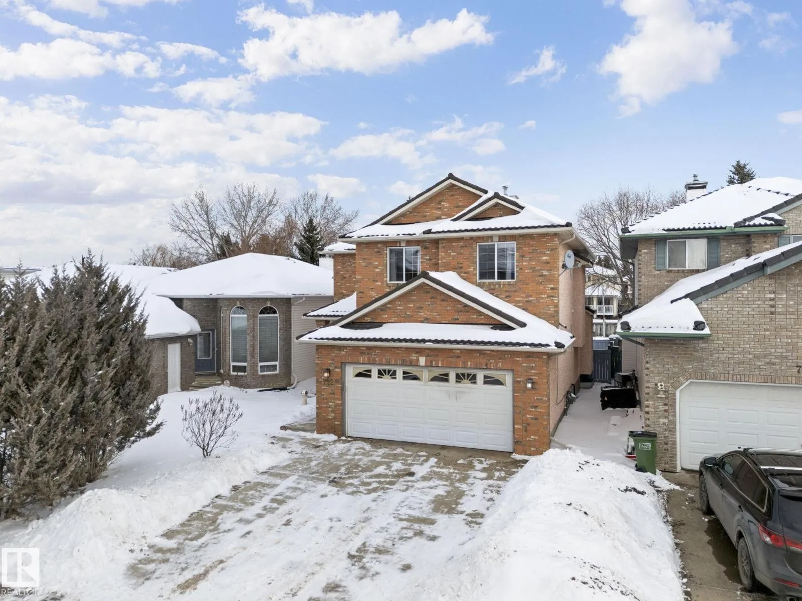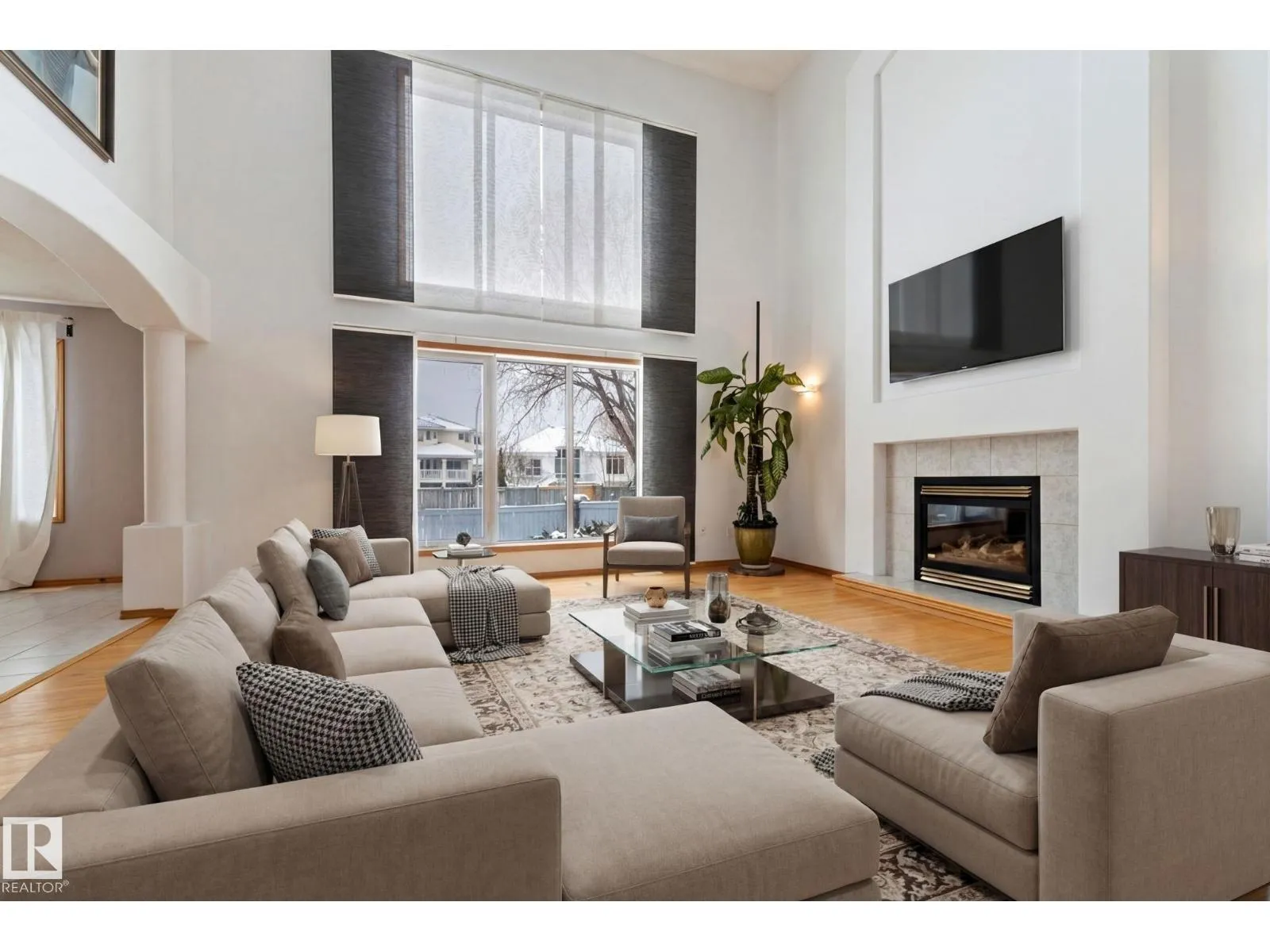 Welcome to this fully finished home in the highly sought-after The Country Club neighbourhood of Oleskiw. Featuring a striking brick & stucco exterior, this open concept home offers an impressive living room with soaring 17-ft ceilings, hardwood flooring, a cozy gas fireplace, & an abundance of natural light from large windows. The main floor includes a versatile den perfect for