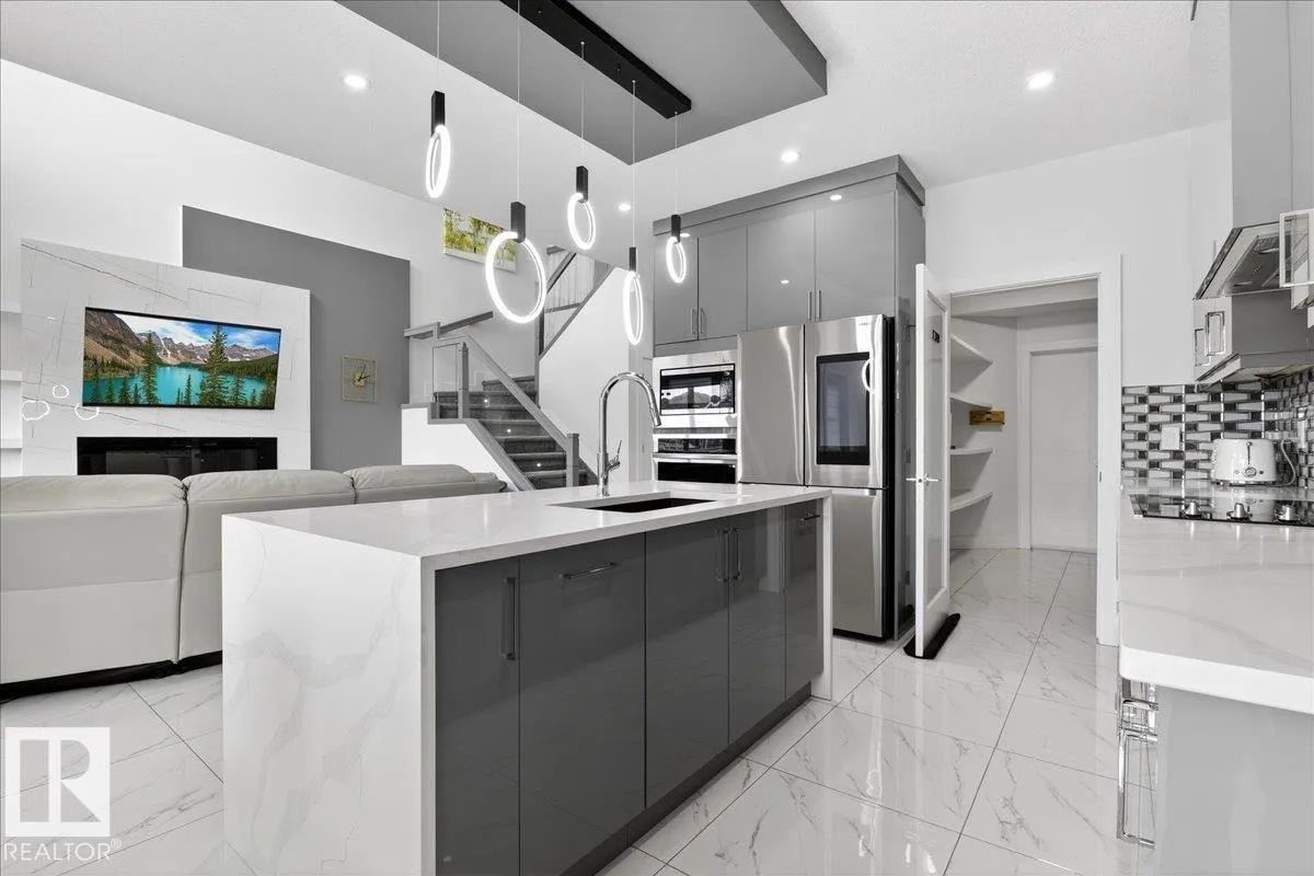 Stunning 2022-built home offering Total 3175 sq. ft. space in the highly desirable community of KESWICK.This spacious 6-bedroom,3.5-bathroom home features a FULLY FINISHED BSMT with a SEPARATE SIDE ENTRANCE—perfect for extended family living—plus a convenient MAIN FLOOR BEDROOM ideal for a home office/den. Designed with modern elegance,the main floor showcases LARGE WHITE TILES throughout,a chef-inspired kitchen with a