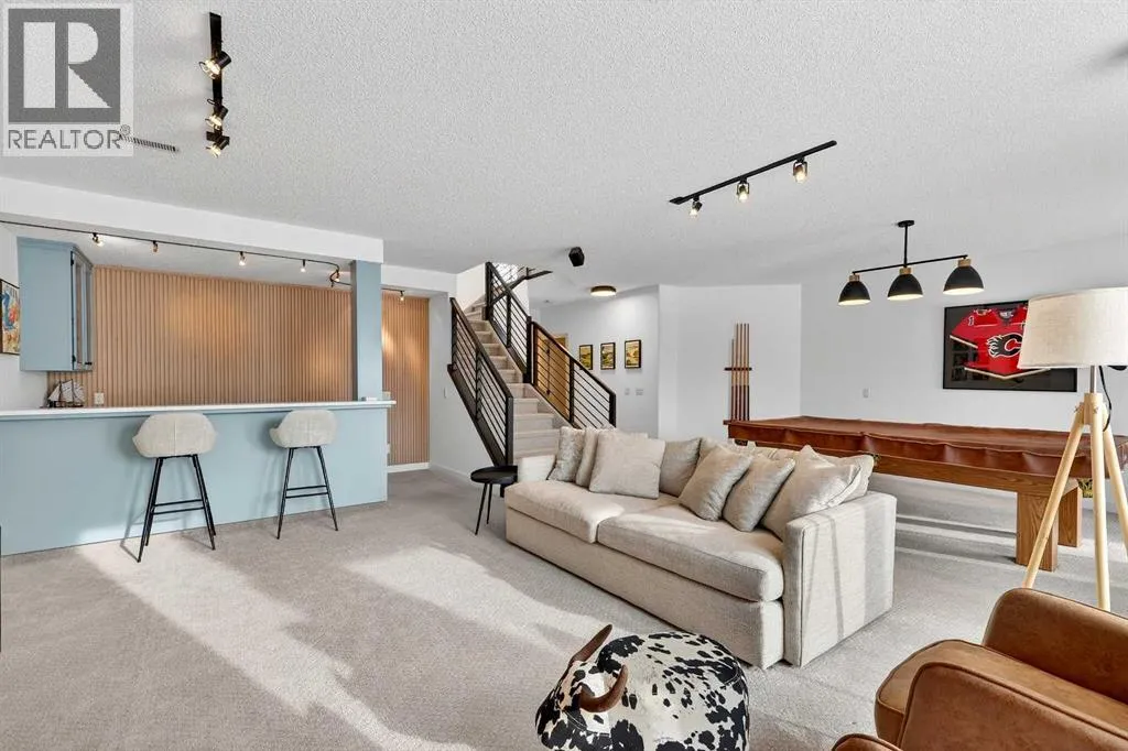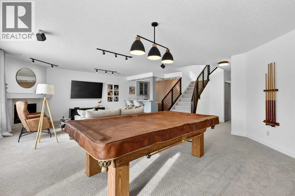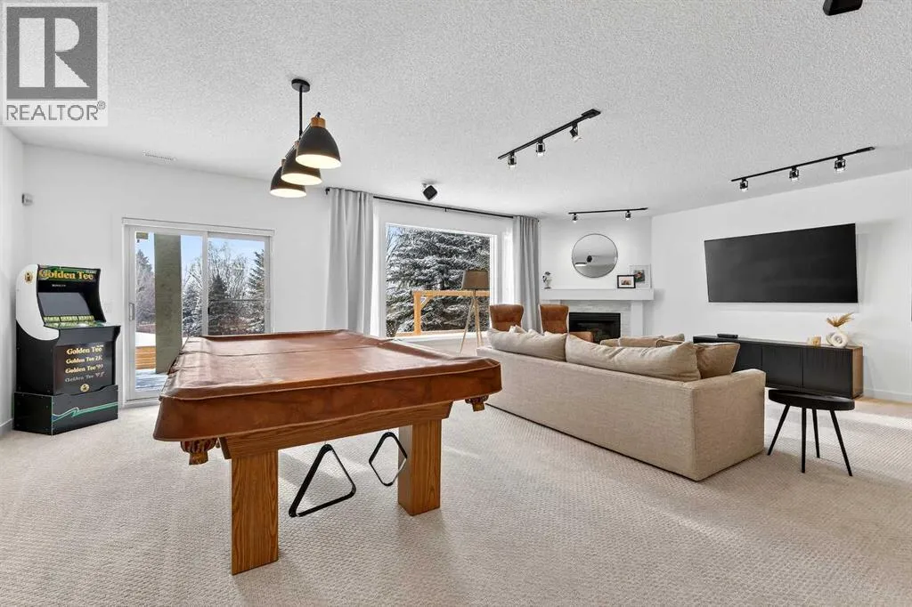 Every corner has been thoughtfully refreshed, blending timeless design with modern sophistication. From the moment you step inside, you’re greeted with wide plank luxury vinyl flooring, striking new front door with sleek black hardware, crisp fresh paint, transom window detail & refined flat-finish ceilings with inset lighting, creating a feeling straight from the pages of a lifestyle magazine. A stunning formal dining room framed by an oversized window, designer chandelier & elegant arched doorway sets the tone for memorable gatherings. The private main-floor den, currently styled as a nursery, offers flexibility as a serene home office or retreat. The open-concept living space seamlessly showcases the heart of the home-a beautifully reimagined kitchen featuring a dramatic white quartz waterfall island with soft grey veining, 2-toned cabinetry, stylish hardware, undermount sink, built-in microwave, sleek appliances, chimney hood fan backed by penny tile & skylight that floods the space with natural light. The adjacent living room is anchored by a bold black shiplap feature wall with built-in speakers & a large picture window framing the greenery beyond. A charming breakfast nook sits beside French sliding doors leading to the upper deck-the perfect vantage point to enjoy the expansive yard & peaceful greenspace. The spacious primary highlights the impressive 10-foot ceilings of the main floor & is complemented by a spa-inspired ensuite featuring a freestanding soaker tub, dual vanities with quartz counters, designer lighting & mirrors; a striking tiled sho wer with built-in shelving & modern fixtures. A stylish powder room & thoughtfully designed laundry room with cabinetry, folding counter & hanging space complete the main level. The fully finished walk-out expands your living & entertaining space with a sophisticated wet bar adorned with shiplap detailing, cabinetry & bar fridge-all overlooking a cozy family room with stone-surround fireplace & mantle. A spacious recreation area offers room for a pool table & gatherings, while 2 additional bedrooms-both with walk-in closets & beautifully renovated bathroom provide comfort for family or guests. The generous utility room doubles as a home gym. Step outside to your private backyard oasis backing onto an expansive greenspace. With no immediate rear neighbours & walking paths in the distance, you’ll enjoy both privacy and connection to nature-the perfect balance. This is more than a home-it’s a lifestyle. A place where neighbours know each other, pride of ownership is evident & every drive home feels right (id:62650)