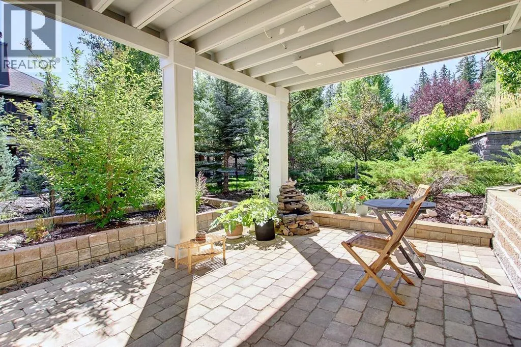 from your own backyard. Step inside to a grand main floor living room with soaring two storey ceilings and a striking three-sided fireplace that beautifully connects the living and dining areas ideal for both elegant entertaining and comfortable everyday living. The thoughtfully designed kitchen features a central island and brand new stainless steel appliances, seamlessly blending style and function. Step out onto the brand new deck just off the kitchen and take in the spectacular forest views. The adjacent family room is filled with natural light from two skylights, creating a warm and inviting atmosphere. Pristine hardwood floors flow throughout the main level. Upstairs, brand-new carpet adds comfort throughout. A charming seating area offers the perfect space to relax and unwind. The primary suite is a true retreat with views of the forest. Complete with a luxurious five piece ensuite, separate vanity area, and walk-in closet. Two additional spacious bedrooms each feature walk-in closets and share a beautifully appointed dual access five-piece bathroom with a separate water closet for added privacy. The fully developed walk-out lower level offers a comfortable living space with in-floor heating and a cozy fireplace. A stylish kitchenette with quartz countertops, sink, and mini fridge makes this level ideal for guests or extended family. The fourth bedroom includes a walk-in closet and access to a spa-inspired bathroom featuring dual sinks and a steam shower. Outside, the massive, treed backyard provides outstanding privacy with low-maintenance landscaping. Enjoy the stunning stone patio, perfect for enterta ining, and gather around the fire pit while soaking in the peaceful, natural surroundings. An attached insulated garage completes this beautiful home. First time on the market, this is a rare opportunity to own a remarkable property in one of Calgary’s most desirable communities where luxury living meets the beauty of nature. (id:62650)