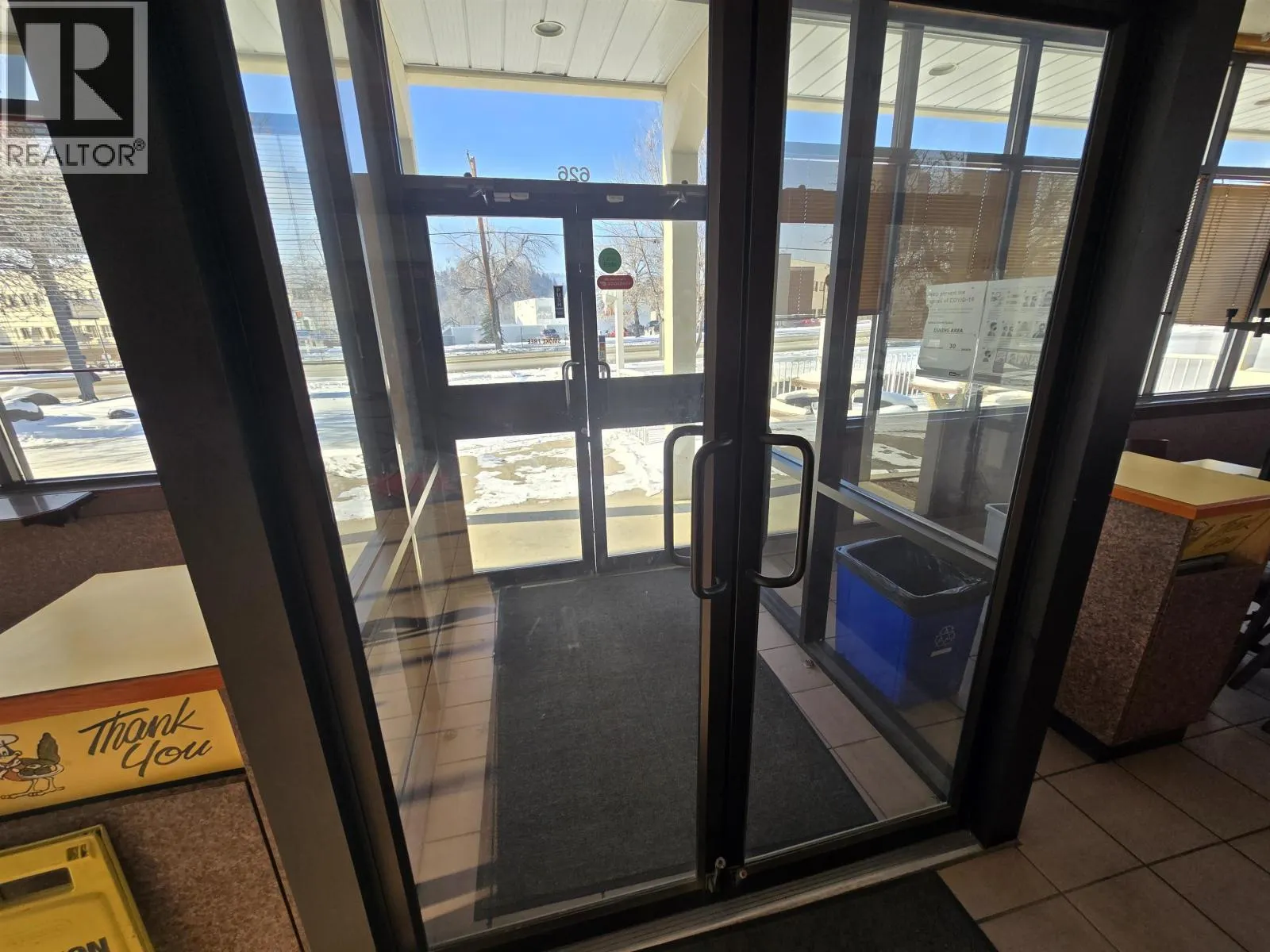 Excellent high-visibility location for lease on Highway 97, the main route through Quesnel. This 2,450 sq. ft. stand alone building features a large pylon sign, ample parking, a drive-thru window and expansive, bright windows spanning the entire front half, allowing for abundant natural light and excellent visibility. Formerly a restaurant, it includes a walk-in fridge and freezer, three bathrooms, and