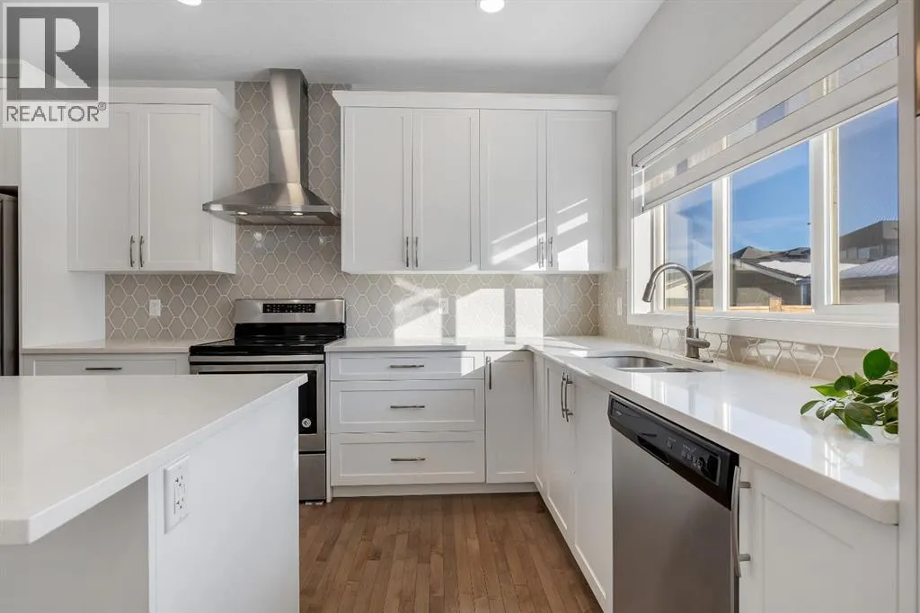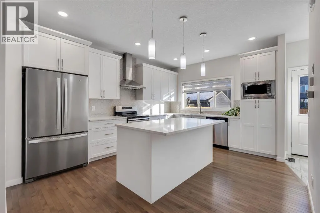 Step into luxury with this former Excel Homes showhome, fully loaded and perfectly situated in the vibrant lake community of Mahogany. Boasting over 2,300 sq. ft. of beautifully upgraded living space, this home features high ceilings and a bright open-concept layout highlighted by a grand foyer with high-end ceramic tile and gleaming hardwood floors throughout the main level. The stylish