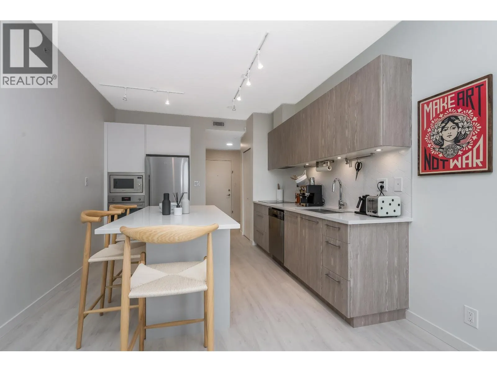 A rare opportunity to own a pristine & immaculately maintained view suite offering panoramic city & mountain views. Bright, Quiet & Move In Ready! 2 Beds, 1 bath. Luxurious & modern finishes. All updates completed with professional trades & approval. Desirable updated flooring throughout. Quartz counters, SS appliances, undermount mood lighting & sleek cabinetry. UNIQUE BONUS: custom created kitchen island