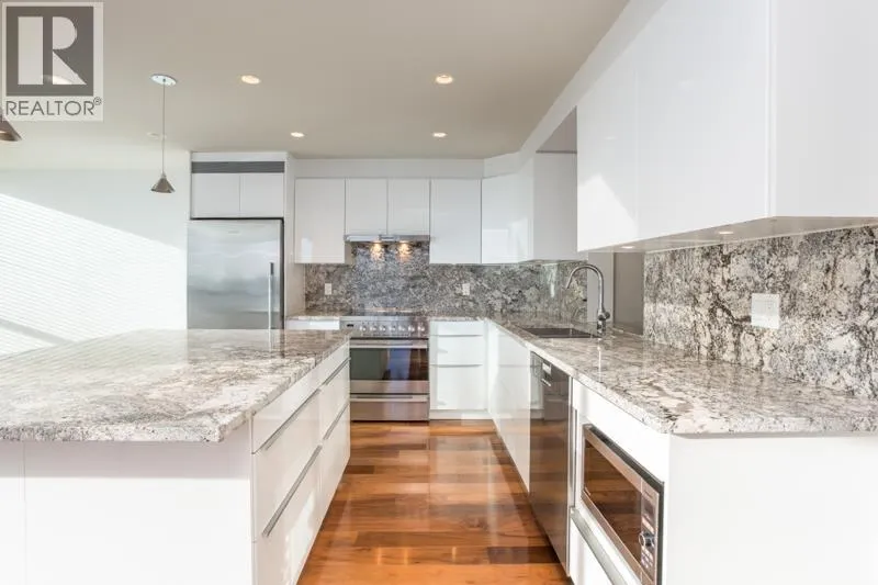 Located in the heart of New Westminster’s Uptown area, in a Bosa built, well manage concrete building. Walking distance to shopping and sky train. This beautifully updated, open floor plan, 2 bedroom, 2 bath, plus den and separate laundry room home, features south west views of the Fraser River, engineered walnut floors, porcelain tile, wool carpets. The kitchen has granite