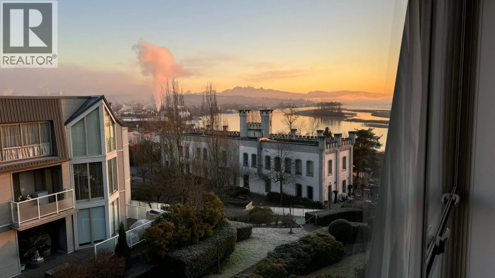 Architectural penthouse with 20ft vaulted ceilings & dramatic double-height living. Rare loft-style home lives like a townhouse, with exceptional volume, natural light, and design forward finishes. 2-bed home offers 1092 sqft of interior living space with approx. 144 sqft of open volume above the living room. Gas fireplace, CB2 designer lighting, & kitchen with labradorite stone countertops, solid oak cabinetry,