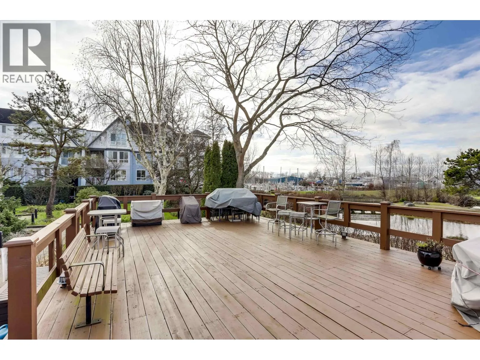 Bright south-facing two-bedroom suite in Nautica South with open views from every window toward Steveston Harbour, the marina, Fraser River, and landscaped gardens. Wood surface flooring runs through the main living areas, and the living room features a gas fireplace. The home is move-in ready with fresh paint throughout and new flooring in the bedrooms, kitchen, and laundry area. Updated