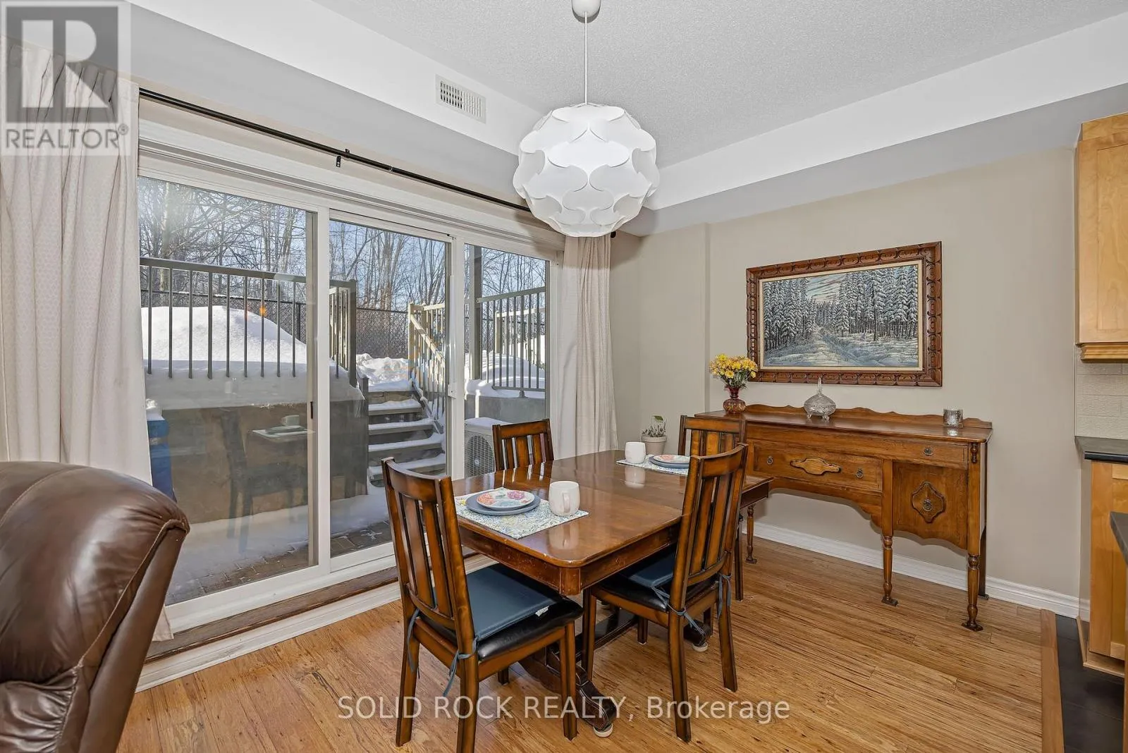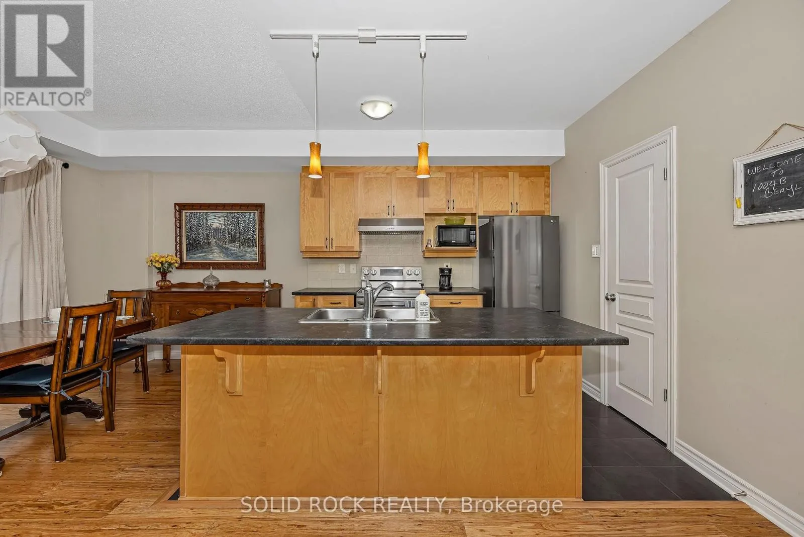 Beautifully updated 2-bedroom condo in the heart of Riverside South, backing onto a quiet and private treed area with no through traffic. This bright ground unit offers modern open-concept living with engineered hardwood flooring on the main level and 9-ft ceilings. The kitchen features solid wood cabinets, stainless-steel appliances (2024), pantry, backsplash, and under-cabinet lighting. Spacious living and dining areas