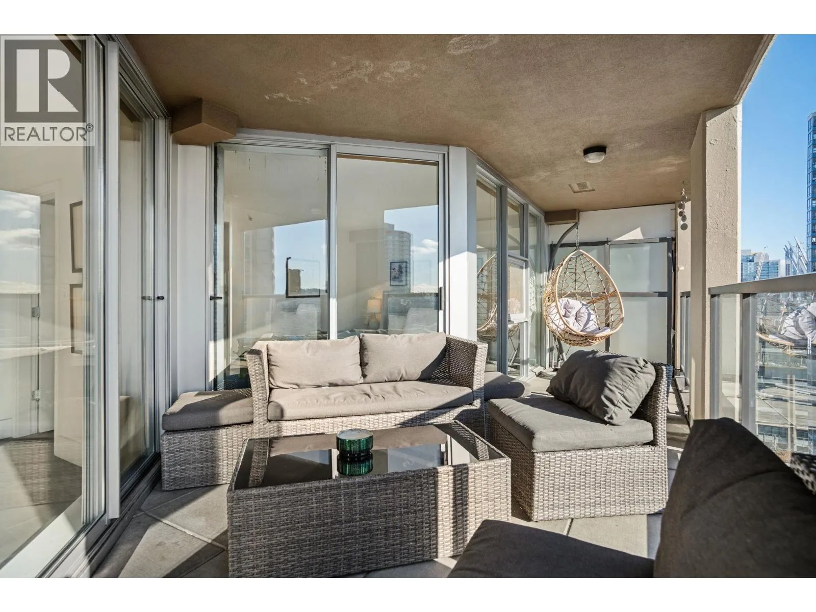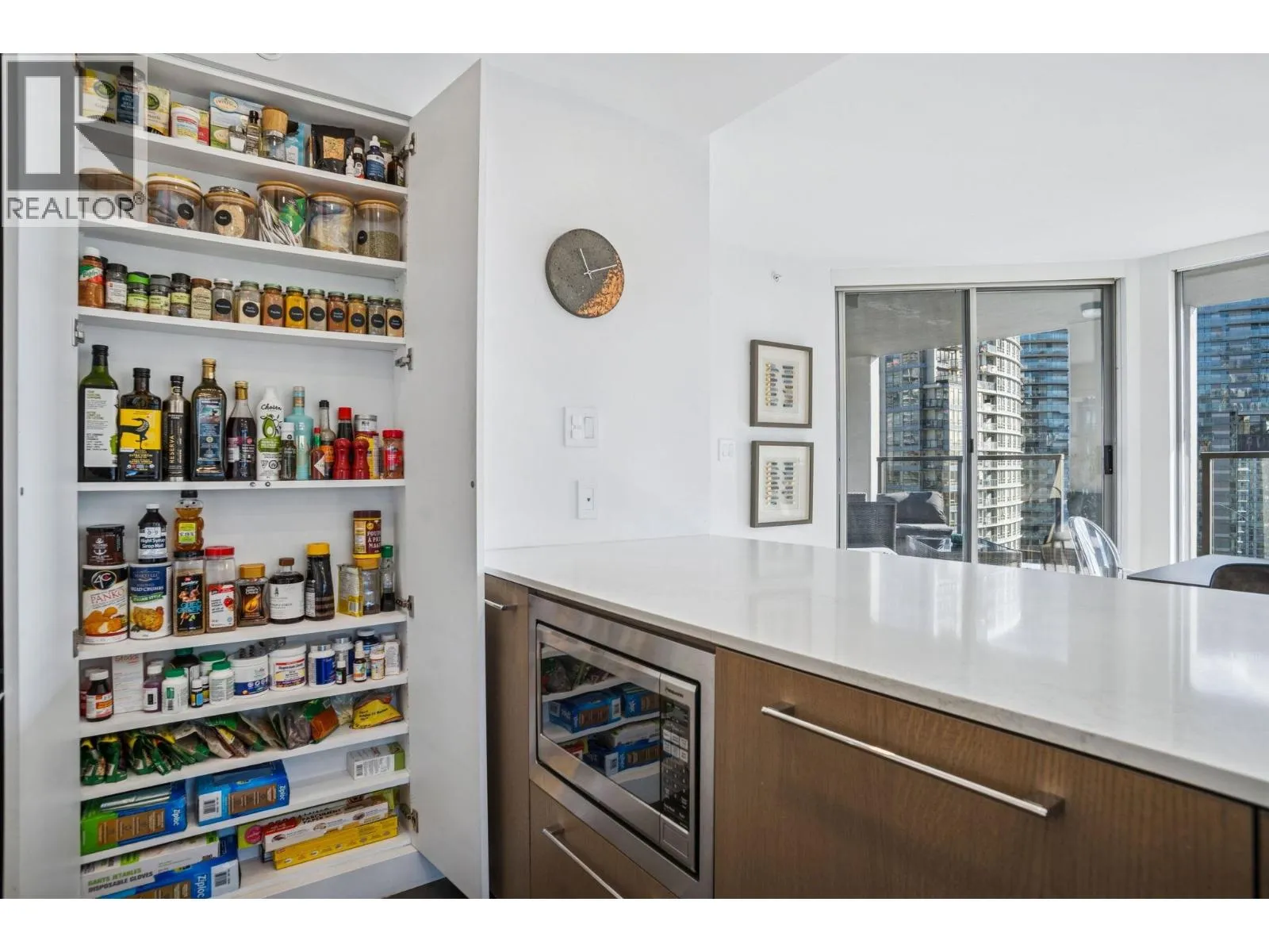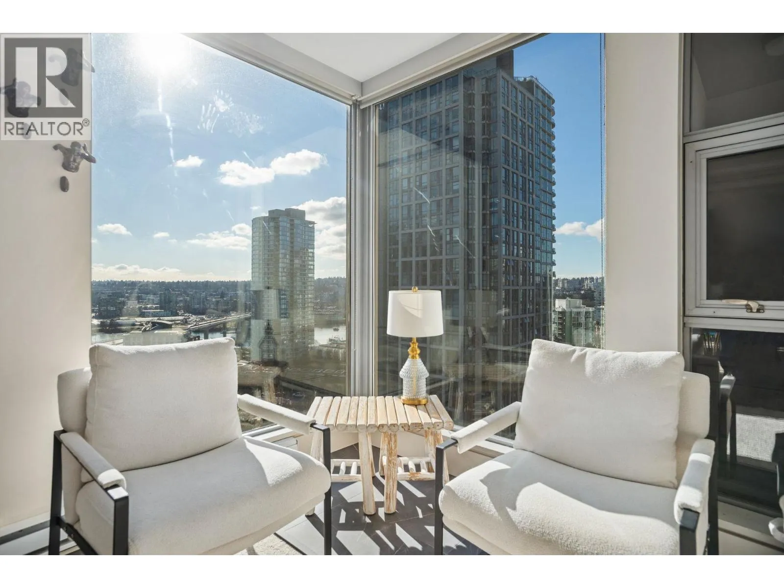 Welcome to Nova by Bosa Properties _ a rare fully renovated 1,308 square ft corner 2 bed, 2 bath + den offering over 400 square ft of outdoor space across two covered large balconies with stunning water and city views. A smart, no-wasted-space layout enhances everyday living. The designer renovation features a gourmet kitchen with premium Gaggenau appliances, custom cabinetry,