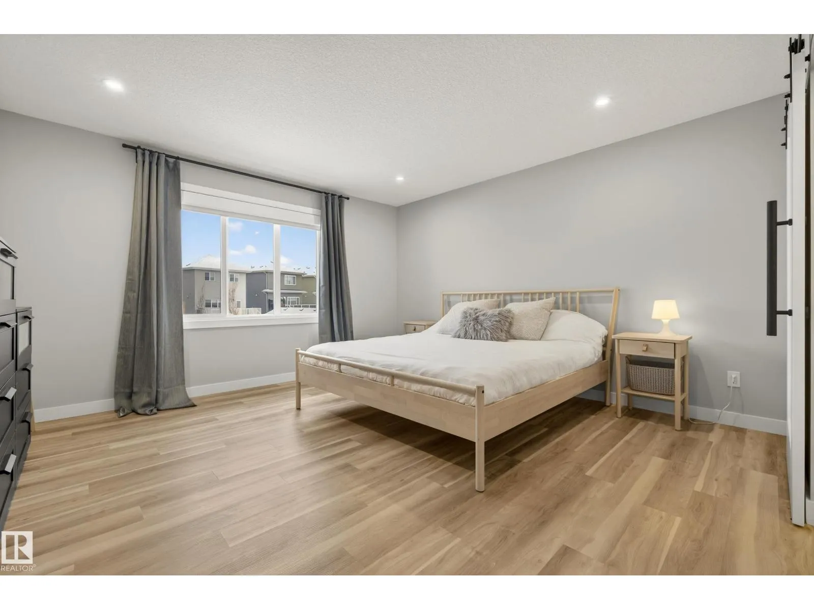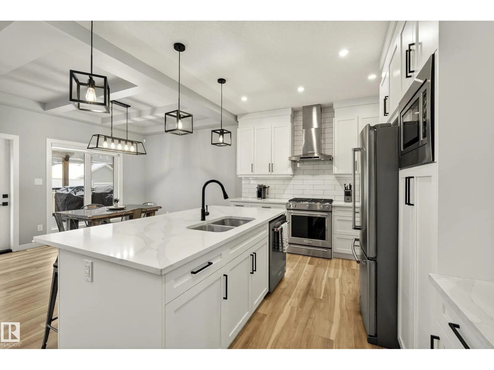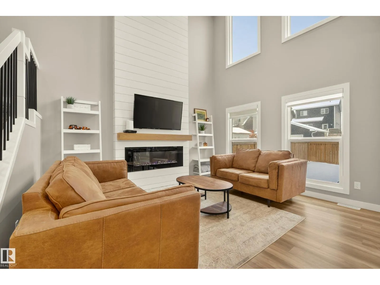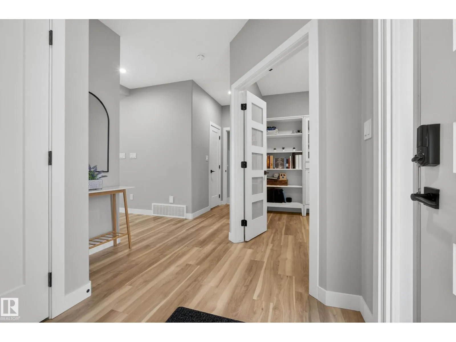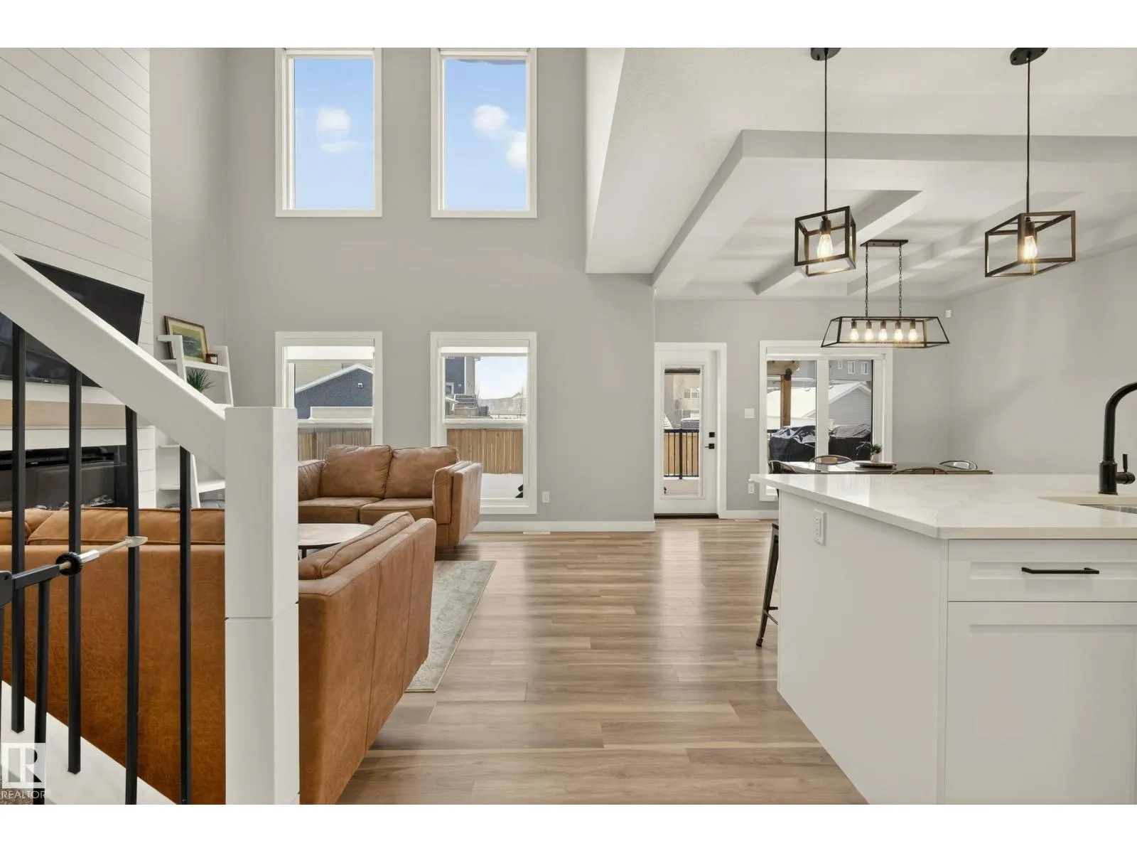 Elevated living in this gorgeous custom two-story perfectly positioned FRONTING THE PATHS to Big Lake. Offering over 2,208 sq ft of refined, open-concept space, the airy OPEN-TO-ABOVE layout and blonde longboard flooring (throughout main floor & bedrooms) create a seamless, modern feel. Chef-inspired kitchen showcases crisp white cabinetry, S/S appliances, walk-through pantry, an quartz island overlooking the sun swept dining