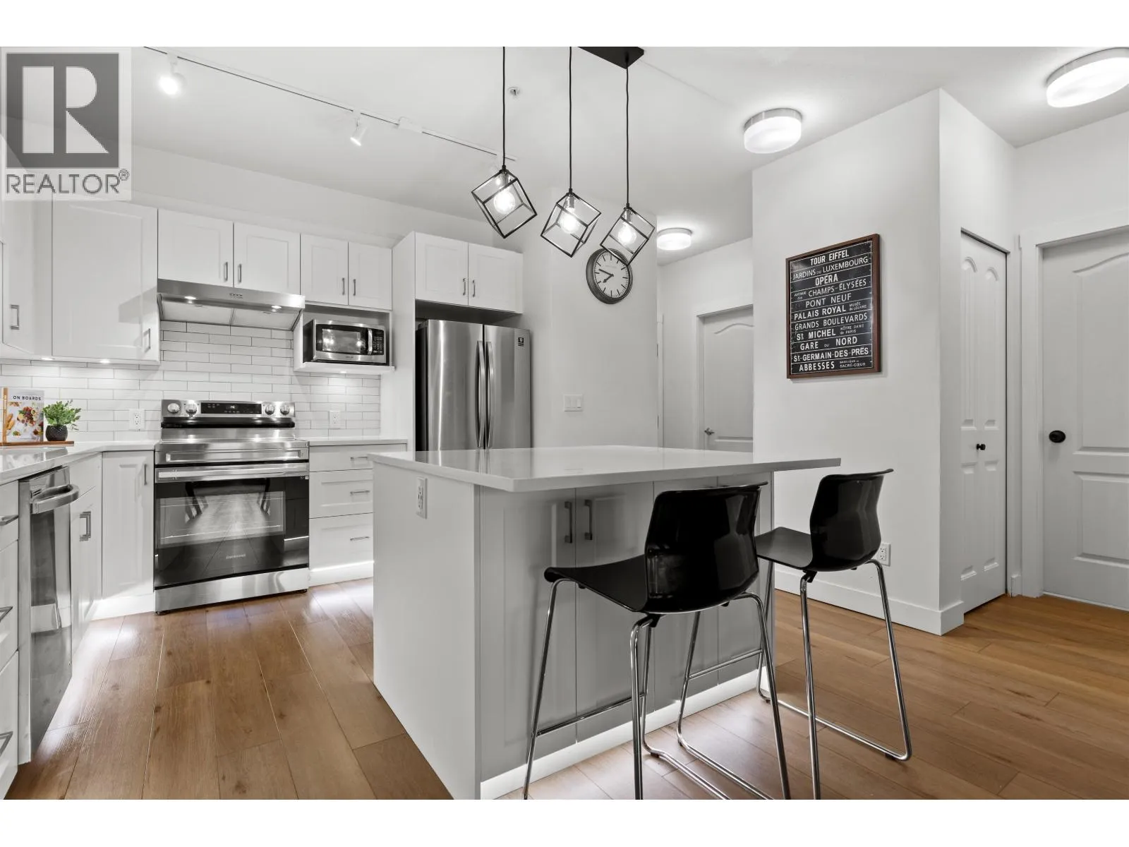 Rare SOUTH FACING completely RENOVATED condo in highly desired McMyn Mews! The kitchen redone in 2021 boasts modern white cabinetry, under-cabinet lighting, a large island & updated appliances. The expansive, 950 sqft layout features 9-foot ceilings, new flooring (2021) & a natural gas fireplace, while south-facing windows flood the home with light. Large bedrooms are on opposite sides for maximum