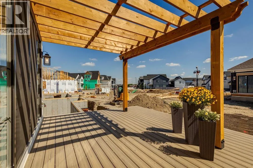 you step into the spacious foyer, you’re welcomed by soaring ceilings and engineered white oak herringbone hardwood flooring, setting the tone for the superior level of finish throughout. A private front den with views of the charming front porch serves as the perfect home office or library, offering separation from the main living space. The heart of the home is an expansive open concept living area that pairs a classic design aesthetic with modern luxuries. The formal dining area is ideal for entertaining, while the masterfully curated kitchen is the “chef’s kiss” featuring custom cabinetry, quartz countertops, and an elite panelled Sub-Zero refrigerator, Wolf appliance package, including a 6-burner gas range with griddle, built-in wall oven and microwave, and Asko dishwasher. An oversized island invites gatherings, and the adjacent open pantry keeps essentials close at hand yet neatly tucked away. The living room is adorned in natural light and anchored by a striking matte black feature fireplace wall, creating a dramatic focal point. Large sliding glass doors extend the living area outdoors to a pergola covered deck, offering a seamless indoor/outdoor lifestyle experience. Retreat to the luxurious primary suite with vaulted ceilings, expansive window, and a custom designed dressing room leading to a lavish 6pc ensuite. Indulge in the deep soaker tub, his/her sinks, and a show stopping walk-in shower with dual rainfall heads and a built-in bench, all appointed with exquisite tile and designer fixtures. Thoughtfully designed for convenience, the main fl oor also features a spacious laundry/mudroom with access to the heated double garage with aggregate flooring. Downstairs, you’ll find in-floor boiler heating, high ceilings, and an entertainer’s dream layout. A generous games room with a full wet bar flows into a cozy media room, perfect for movie nights or game days. Two large bedrooms, one with its own ensuite, are separated by a dedicated home gym space and guest bathroom. Homeowners will love the large pergola deck that steps down to their own backyard where gardening enthusiasts can create an outdoor colourful oasis or a relaxation retreat. Located in Currie, a master-planned community rich in history and brimming with modern lifestyle amenities, from scenic parks and pathways to dog parks, cafés, restaurants, and top- tier schools. Just minutes from Marda Loop and downtown Calgary. Personalize your dream villa today by meeting with our design experts and customizing the finishing touches to match your unique style and vision (id:62650)