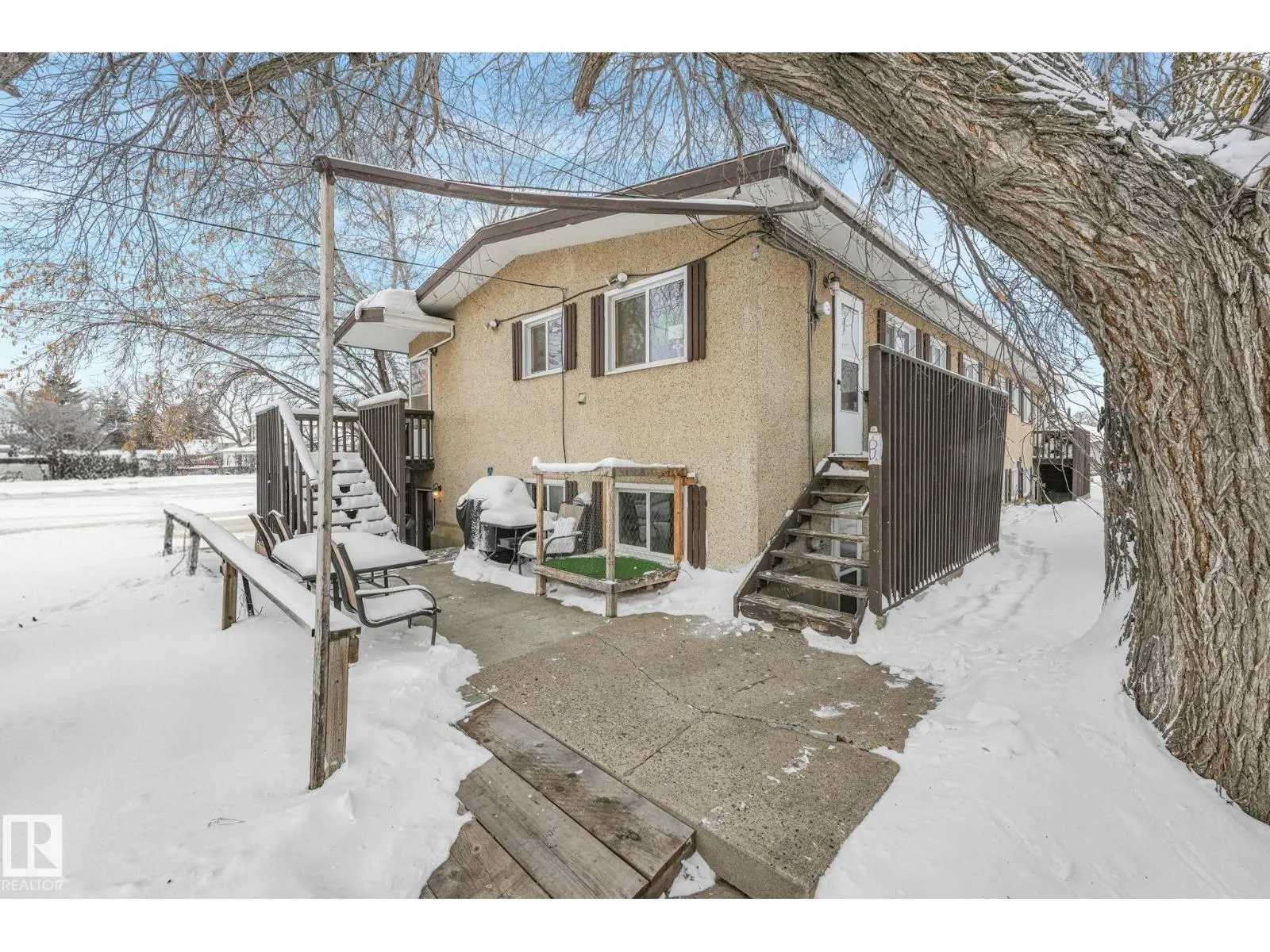 Fully self-contained 4-plex with no interior common areas — each unit is completely enclosed and equipped with its own washer, dryer, fridge, stove, furnace, and hot water tank. Tenants enjoy independent living with separate systems and added privacy. Situated on a corner lot with powered parking stalls for each tenant. Shingles and windows have been updated within the past 12