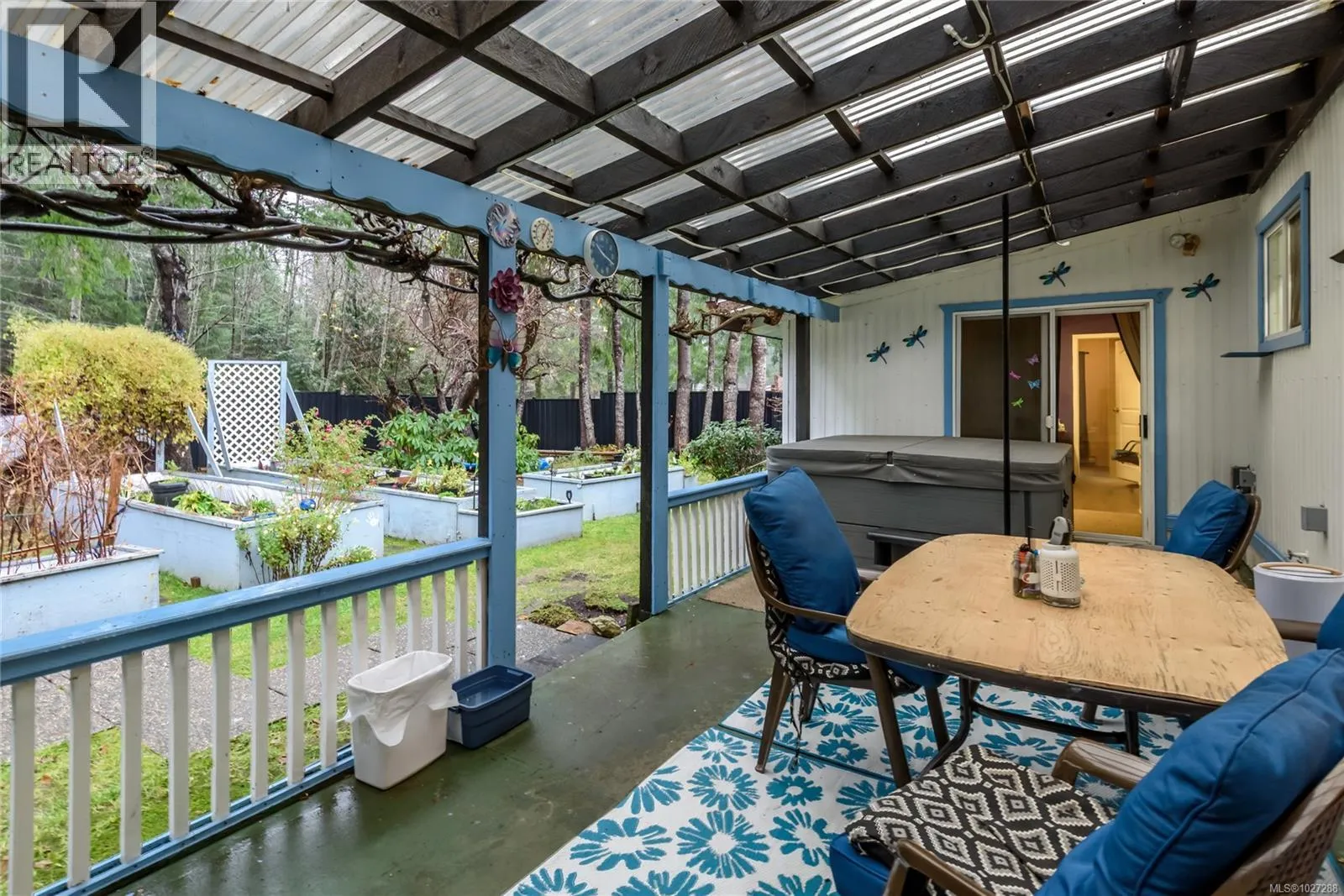 Very easy living. One of the best units in the park. Tucked away at the end of a no-through road and backing onto the forest. Totally private with a covered Hot-Tub deck overlooking the raised bed gardens, beautiful flowering (in the seasons) shrubbery and fruit trees. Many, many upgrades in this lovely home including a bright and practical custom kitchen,