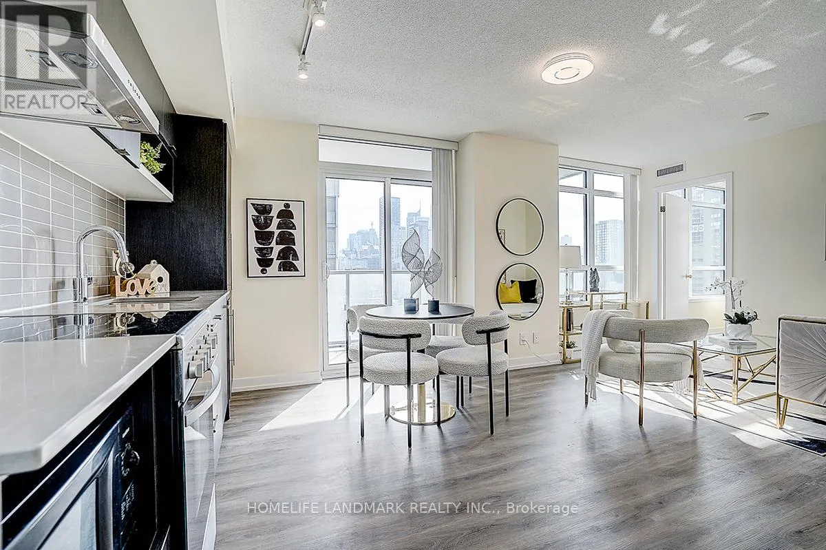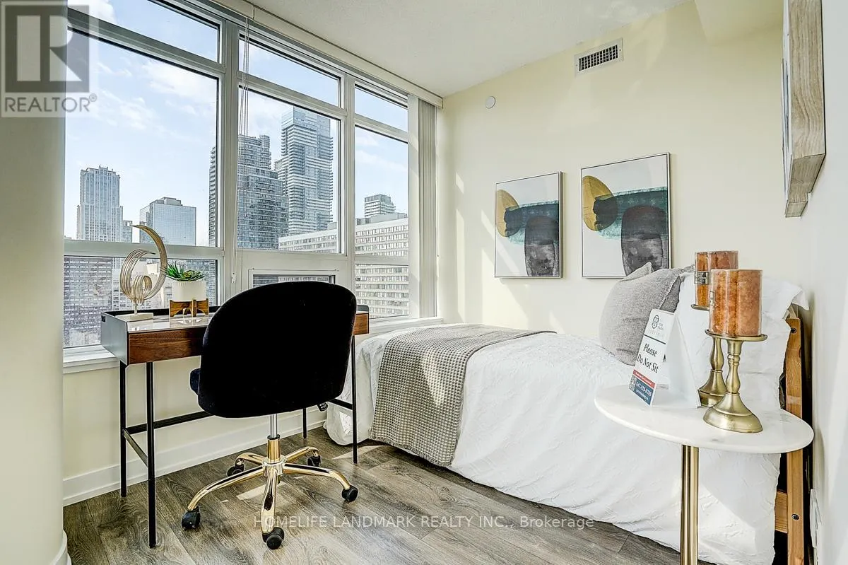 Enjoy unobstructed South And East Views Of The City With A Large Wrap Around Balcony, 3 Bdrm, 2 Bath. Corner Unit With Window each bdrm & Tons Of Natural Light. High Quality Material Throughout Including Gorgeous laminate Floors, South West Exposure With Great Balcony. Walking Distance To Shops, Transportation, Yonge Dundas Square, Ryerson, U Of T And Some Of The