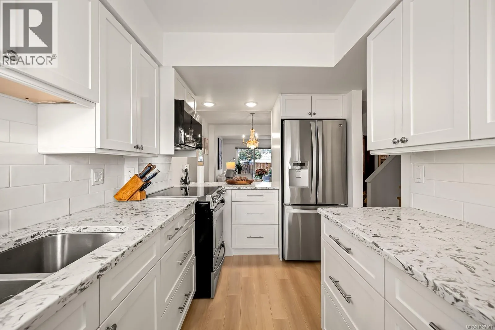 Beautifully updated 2 level townhome in central Comox is immaculate & move-in ready. The main level features hardwood laminate floors with an open plan living/dining room warmed by gas fireplace with large windows & sliding door opening to your lovely private garden & nature behind. The bright galley kitchen features newer stainless steel appliances, quartz countertops, shaker cabinets and tile