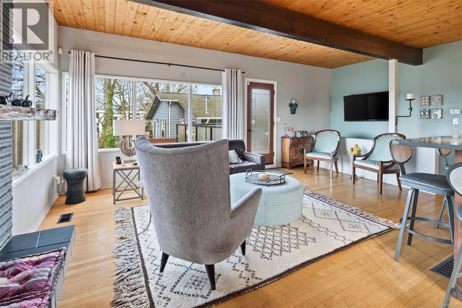 Mid century modern home with updates overlooking Portage Inlet! The main living space is amazing – it has an updated open concept kitchen, gorgeous beamed wood ceiling, a wood burning fireplace and tons of windows allowing you to enjoy the views of Portage Inlet and gorgeous sunsets. There is also a huge deck with glass railings accessed directly from the