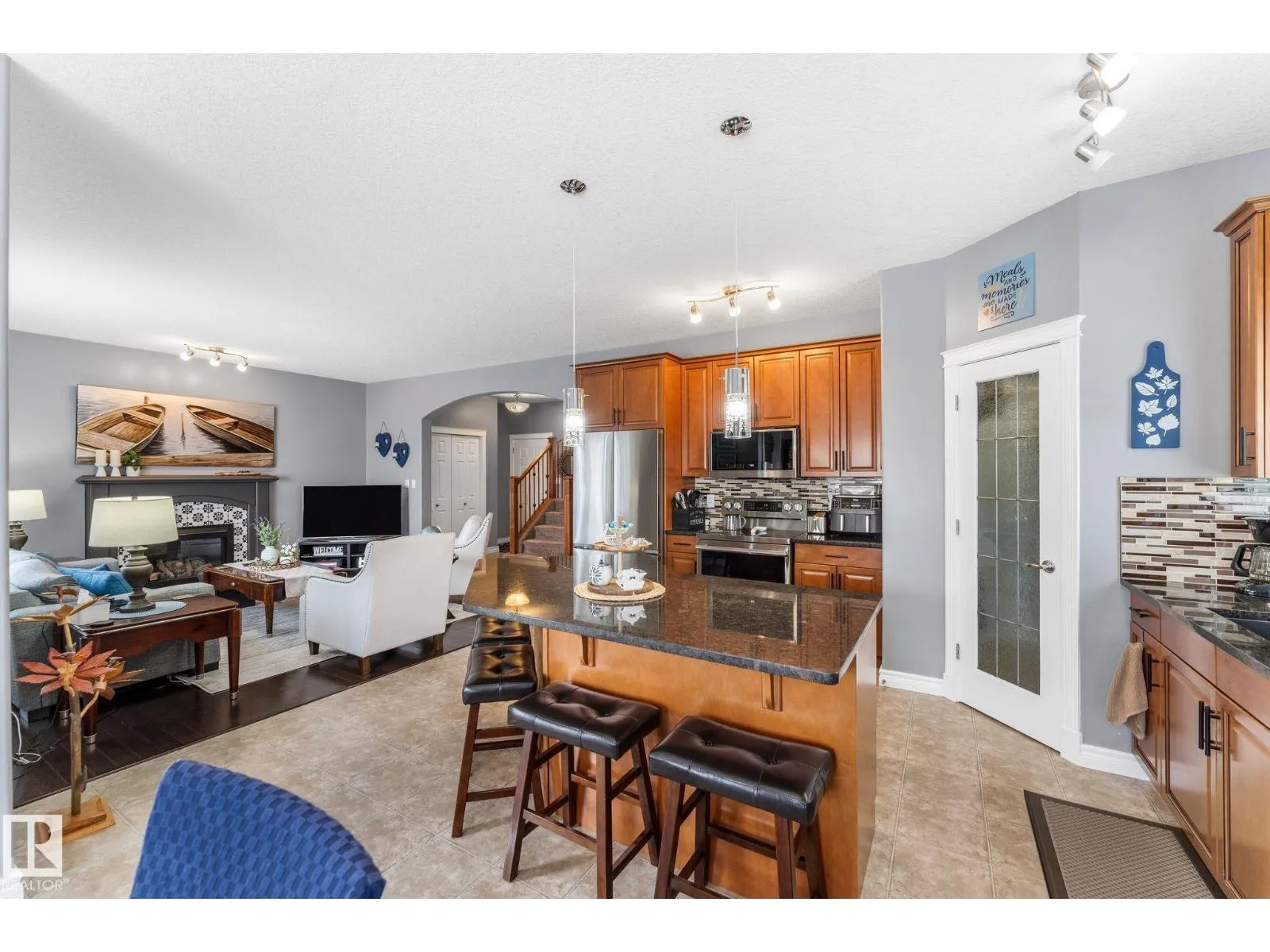 Beautiful fully finished two-story home located on a quiet crescent next to a walking path and close to Pryce Alderson Park. The main floor features 9’ ceilings, a spacious living room with updated fireplace, large dining area, main floor laundry, and a stunning renovated kitchen with walk thru panty, updated island, countertops, and NEW appliances. Upstairs offers 3 bedrooms including