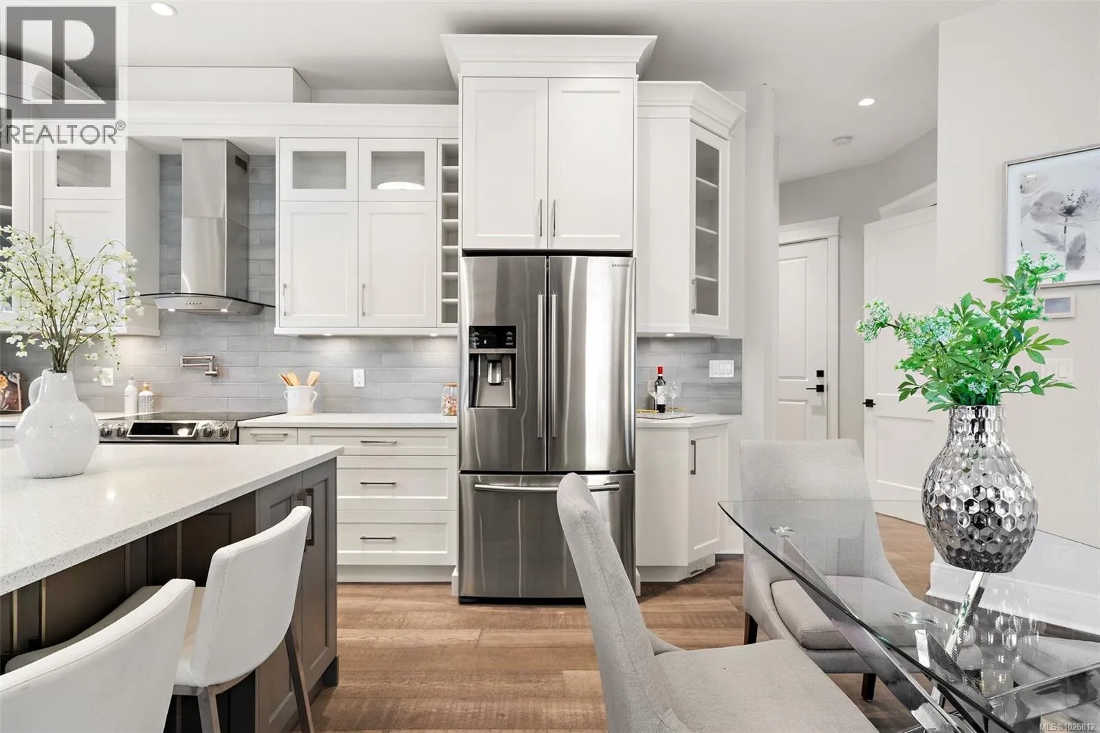 Like new 3 bed, 2 bath rancher just one block from the ocean & an easy stroll to beautiful downtown Sidney! This stunning home offers a bright, open-concept kitchen & great room w 12′ ceilings ceilings, quartz countertops, a large quartz island, & abundant cupboard space—perfect for entertaining. This home is bathed in natural light from the oversized windows &