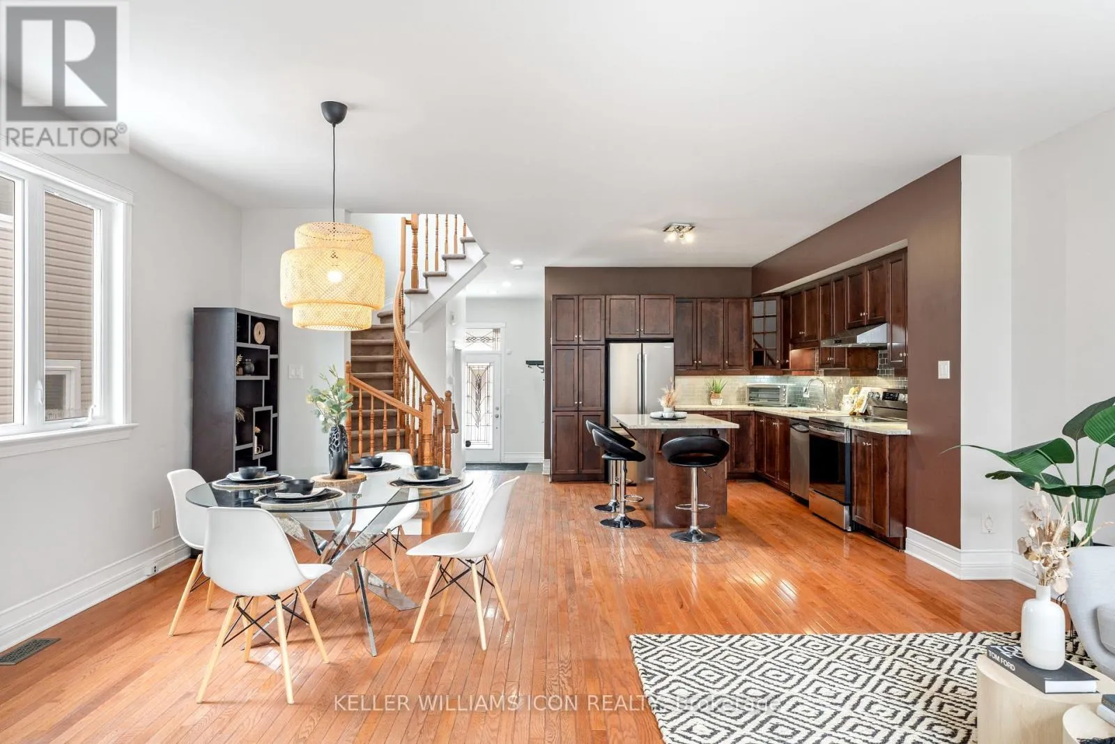 Looking for a newer home without the long commute? This is the one.Featuring a widened two-car driveway with interlock, oversized garage with EV charger, bright open-concept living space, beautiful sunroom addition, impressive 9-ft ceilings, this home delivers the space and features a modern family want, in a central location of the city. The main floor, a stunning south-facing arched window