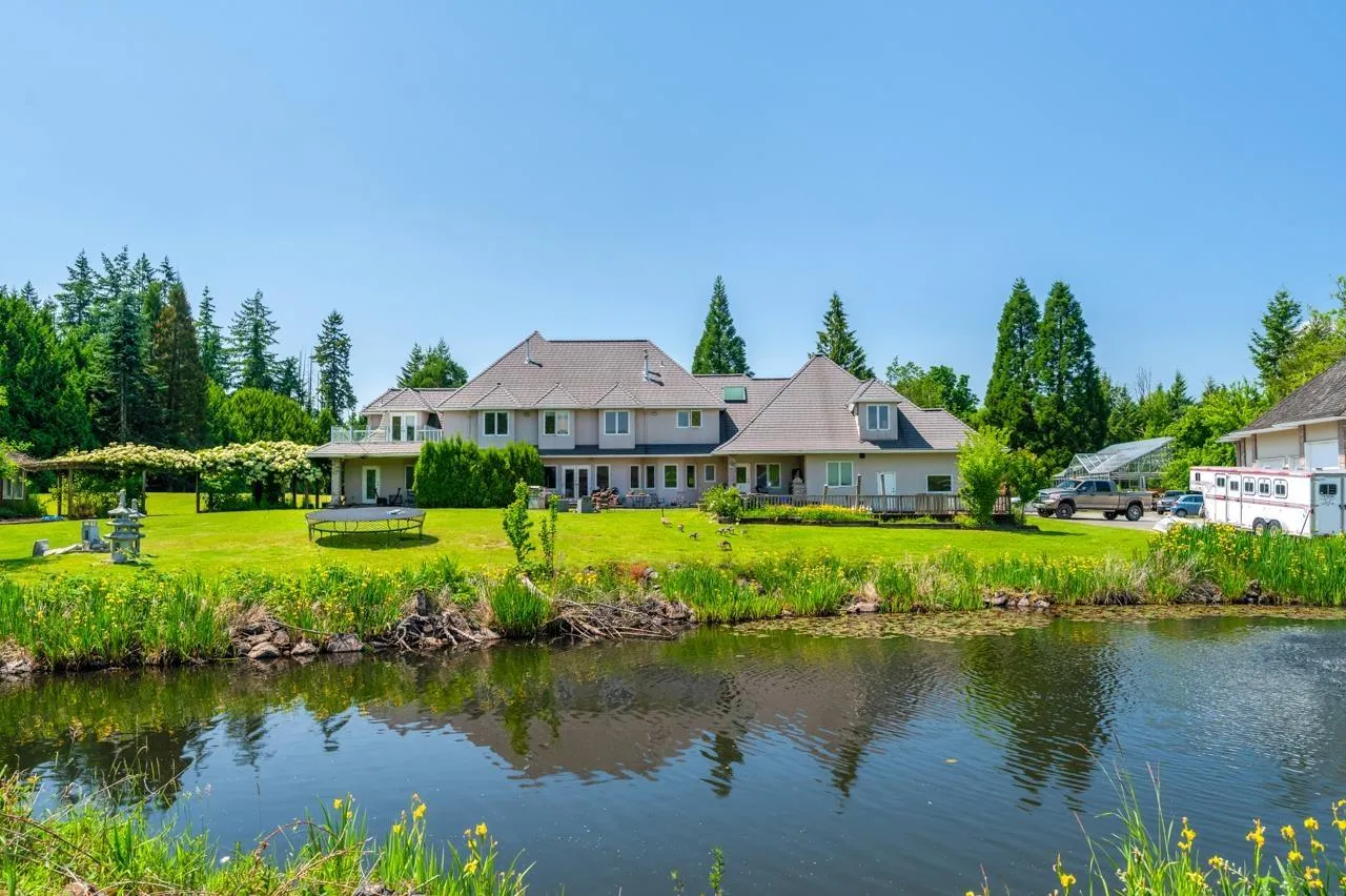 +"PublicRemarks": "19.89 ACRES, Estate Home, Blueberry Farm, and Wedding/Event Venue! 7,196 SQ/FT Estate Home with 8 Bedrooms w/ ensuites and 9 Bedrooms with multi-generational living. Breathtaking views of Mount Baker, with manicured grounds, rose gardens, water features, wine tasting room, and a putting green. Several outbuildings, which include a 2,400 SQ/FT Greenhouse, a 1,500 SQ/FT Building, and a 1,360 SQ/FT Retail Store. Approx. 15.52 Acres planted in full production Blueberries. Close to all amenities and has easy access to Fraser Highway, Highway #1, and the USA Border. (id:62650)"