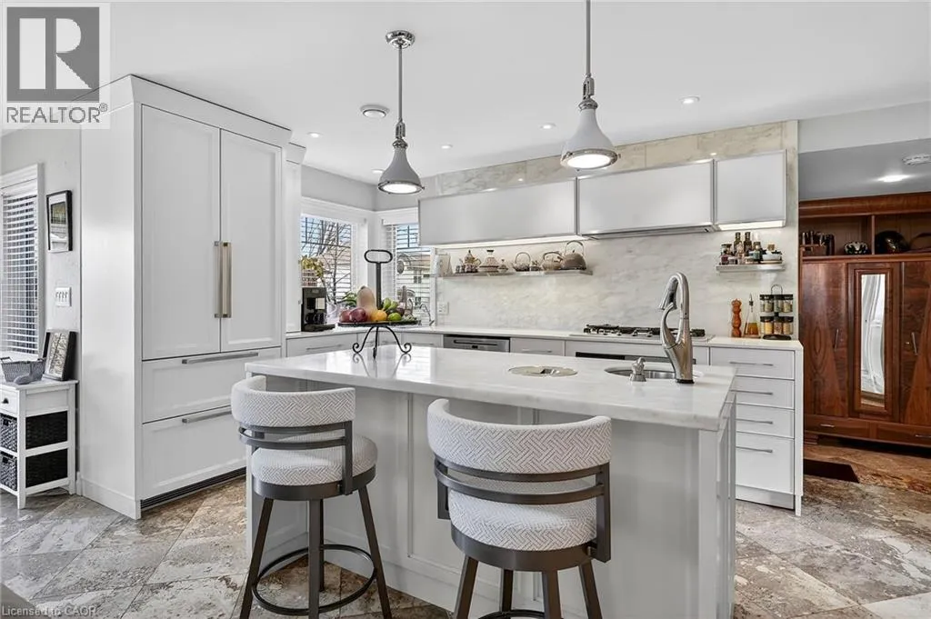 Beautifully appointed bungalow steps away from Lake Ontario, located in Port Dalhousie’s exclusive cottage district. Enter into the welcoming foyer and step into this custom home that showcases a spacious and bright open main floor plan starting with the show stopping chef’s kitchen! Luxury Miele and Fisher Paykel built-in appliances with floor-to-ceiling custom cabinetry, French limestone floors with in-floor heating