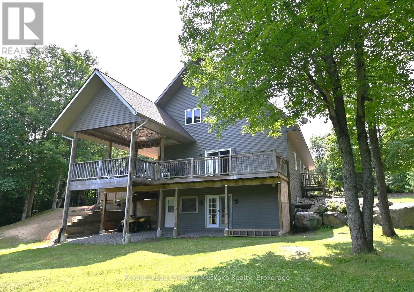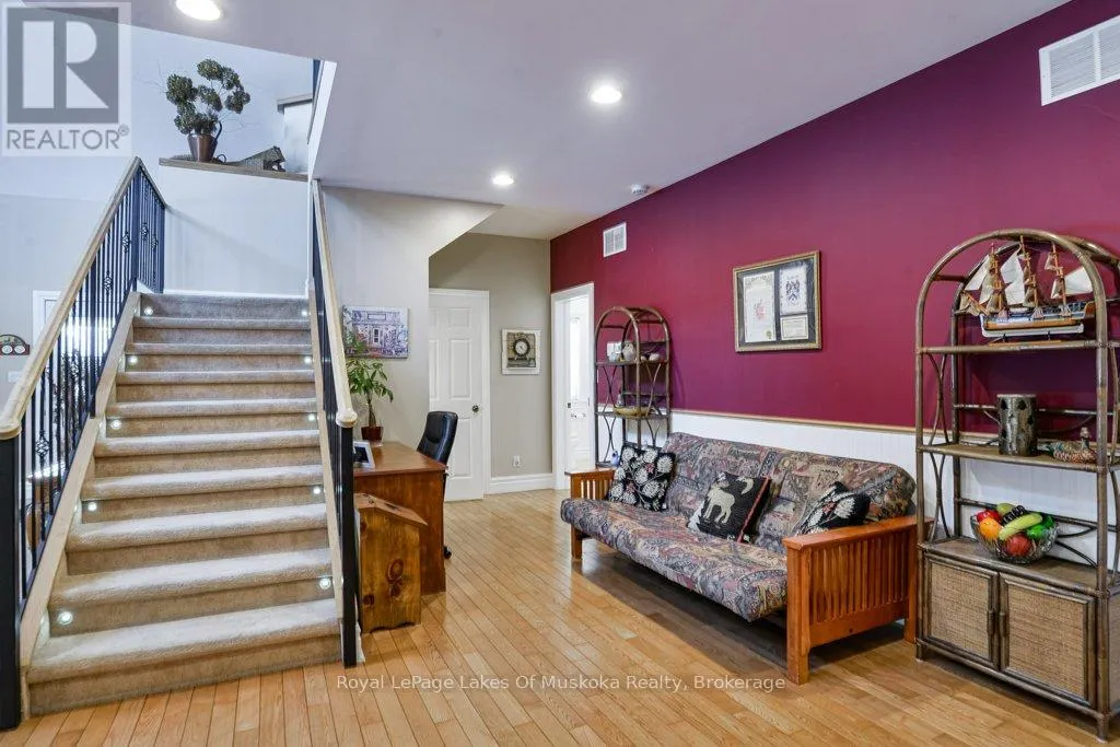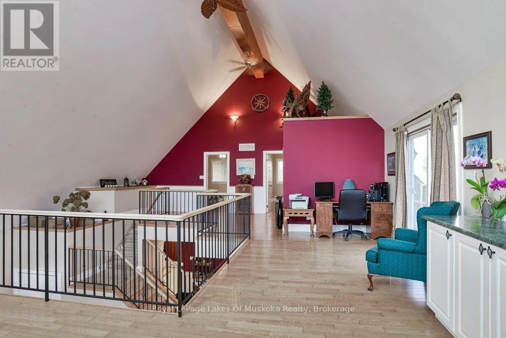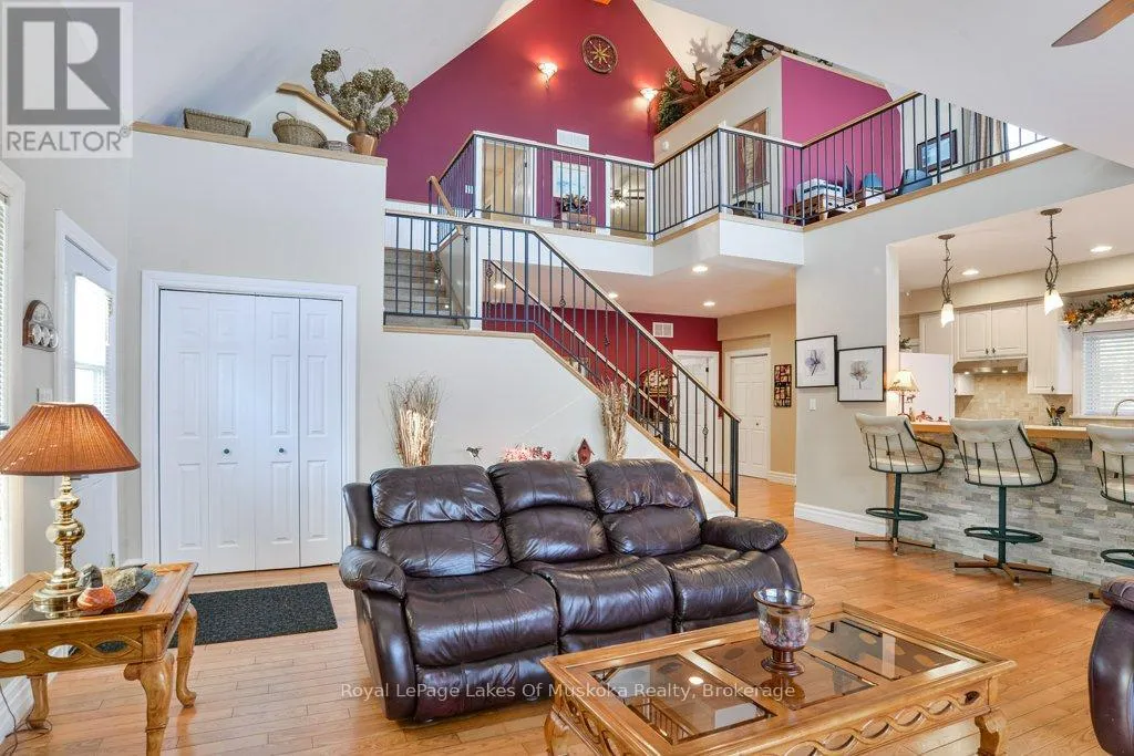 Welcome to your private country sanctuary nestled on a picturesque 2-acre lot overlooking a tranquil pond where birds and wildlife gather. This thoughtfully designed custom-built home with 3800sq. feet of living space offers the perfect blend of space, comfort, and Muskoka charm – ideal for extended family living or hosting overnight guests. Enjoy warm summer breezes from the expansive wrap-around