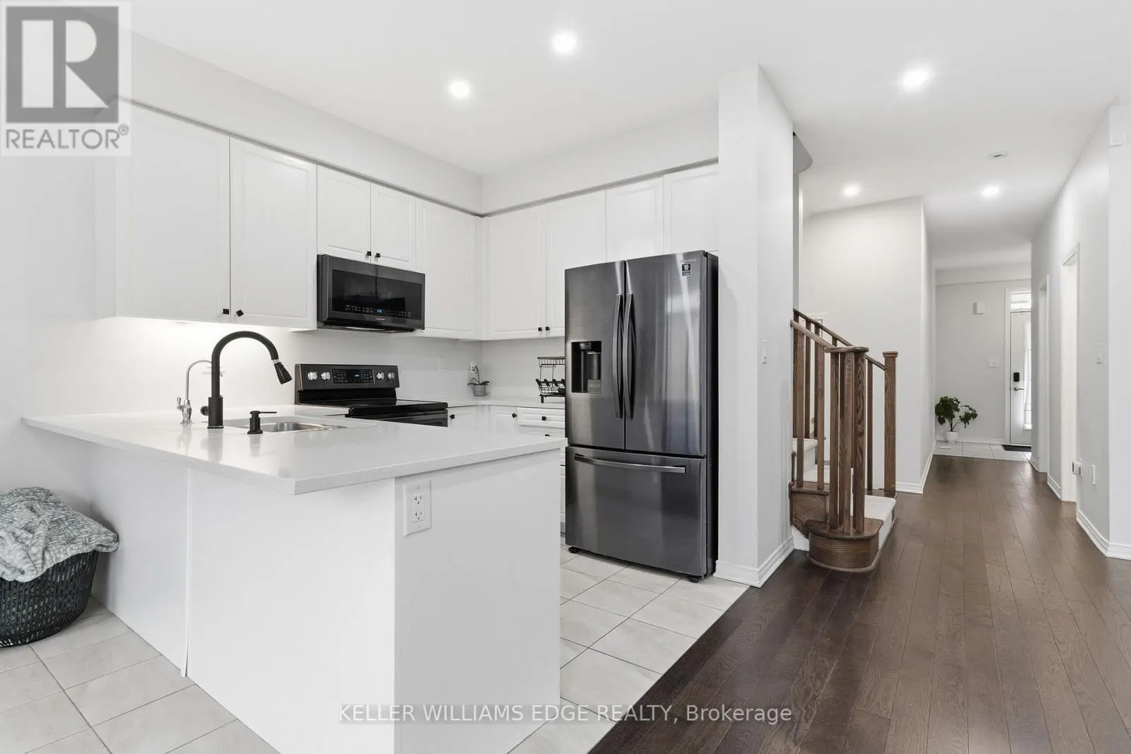 Welcome home to this beautifully designed 3-bedroom, 3-bathroom freehold townhome, built in 2020 and located in one of the area’s most vibrant and fast-growing communities. Thoughtfully finished with hardwood flooring, quartz countertops, designer pot lights, and black stainless steel appliances, this home offers a perfect blend of modern style and everyday functionality. The open-concept main floor is ideal for entertaining