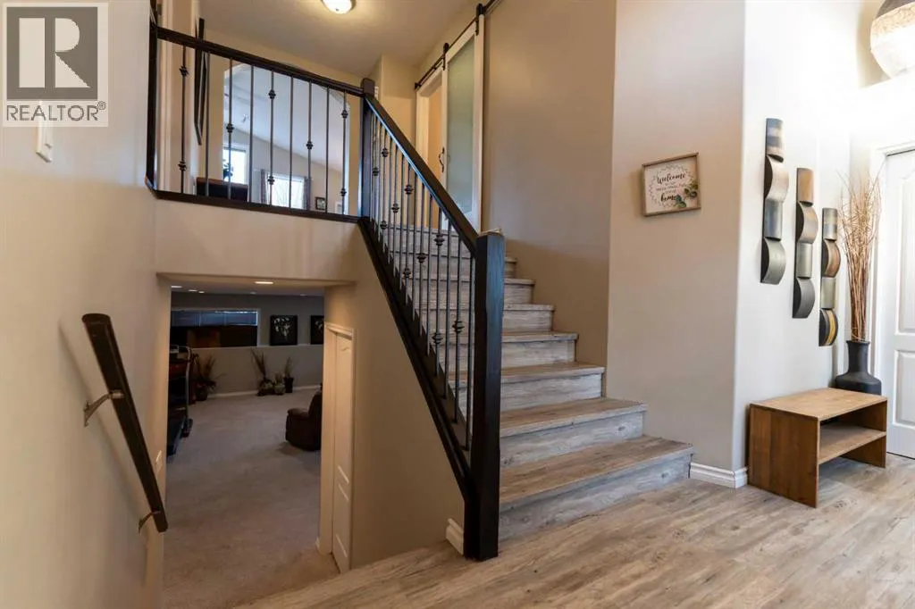 65 Heritage Circle W, LethbridgeHeritage Heights | 5 Bedrooms | 3 Bathrooms | 1,338 Sq.Ft. | Double Attached GarageFrom the moment you step inside, the home feels open and inviting. A bright entryway welcomes you with high ceilings and a split staircase accented by dark iron railing, creating a memorable first impression.The layout naturally draws you into the main living