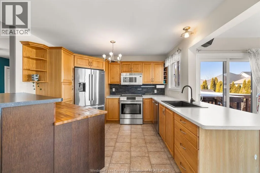 A Nice Package & Great offering! Right in Tecumseh/Lakeshore’s most desirable location!!! A Special rear added on 4 season sunroom uniquely incorporates openness to the kitchen(SS appliances), and the action packed yard with 3 sets of patio doors, raised gas f/p, wired for surround sound/tv, slate tile, complementary custom glass display cabinetry, all giving a personal entertaining warmth and comfort