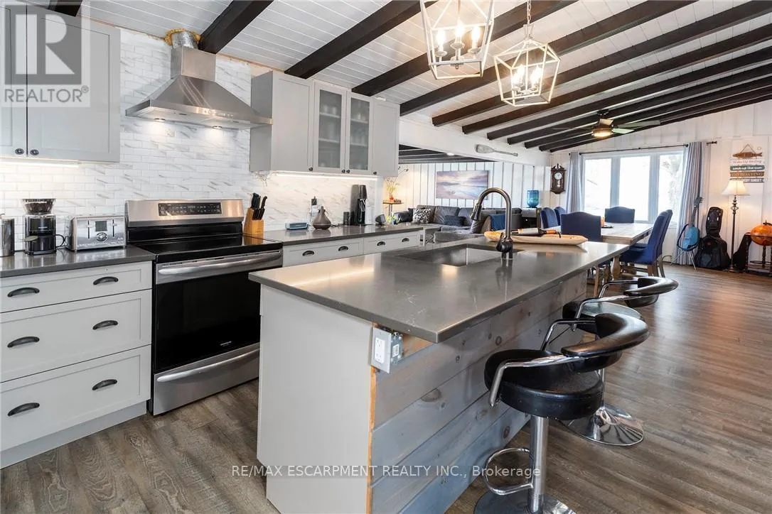 BREATHTAKING Waterfront views at your year round LAKESIDE OASIS. Check out this spacious 4 Bed, 2 Bath Bungalow with Detached Garage! You will be wowed by this one offering privacy, tranquility and peaceful living and inside offers high ceilings, large windows for plenty of natural light and amazing views. The open concept is perfect for entertaining family and friends. The