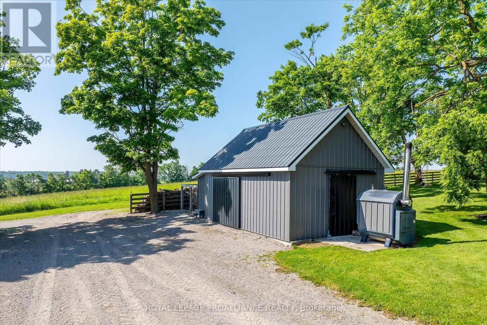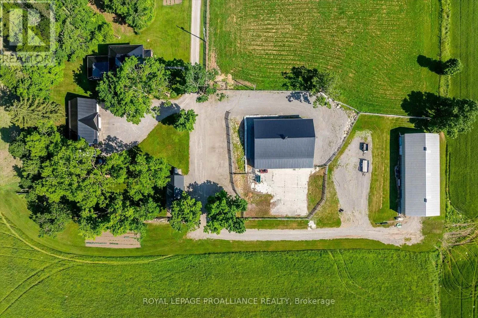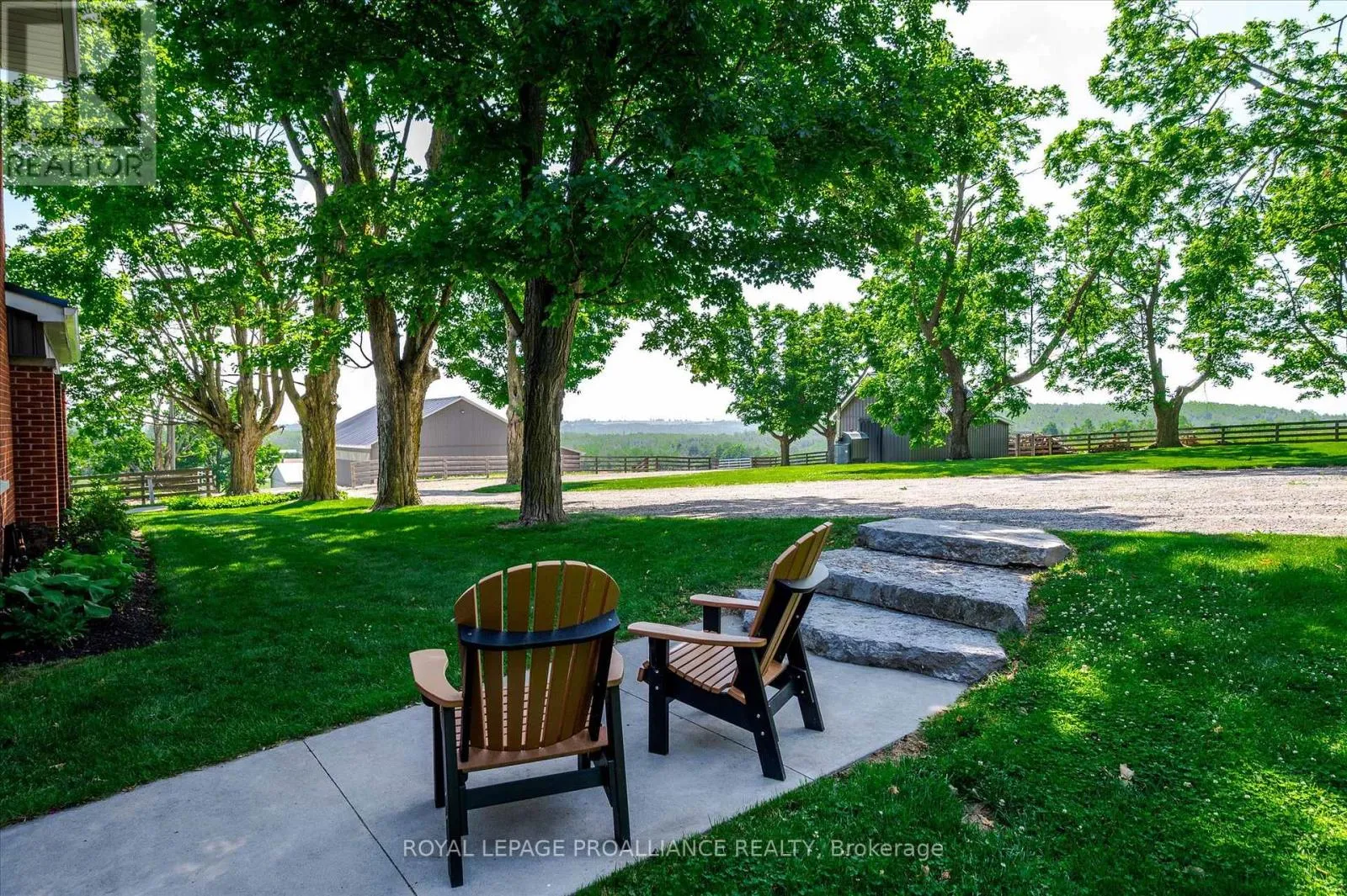 **Welcome to the Original Bland Farm** – Perched on a hilltop, this 95+ acre farm boasts privacy, serenity, and extraordinary miles-long views in Cavan Hills. Completely refurbished, having seen over $500,000 in investments over the past decade, including a complete remodel of the 2,150 sq ft century brick home and the addition of four outbuildings, including an oversized detached 2.5-car