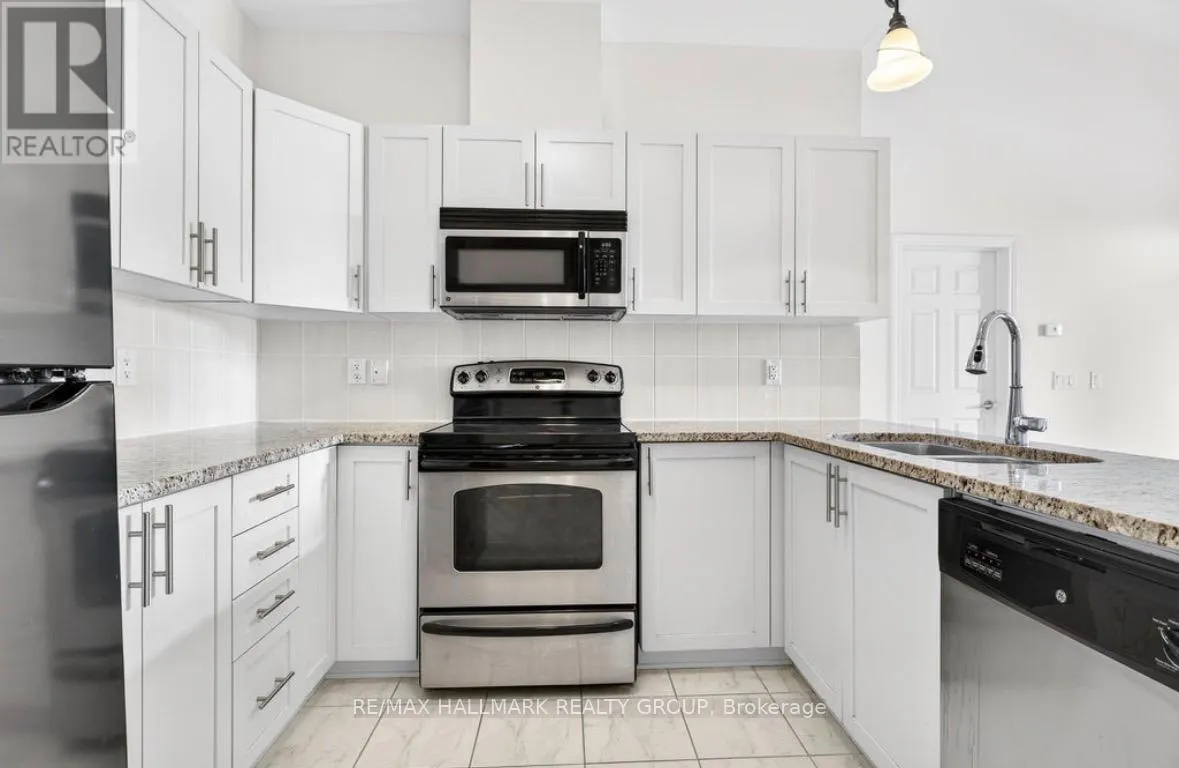 2-bedroom, 2-bathroom Condo unit with hardwood and tile flooring throughout and features vaulted ceilings. The kitchen is white and gorgeous with granite countertops and all appliances included. 1 Parking Space included. The building is quiet, located near several public primary schools & high schools, amenities, and grocery stores in Billings Bridge Shopping Centre and Blue Heron Plaza.It’s just a 1-minute