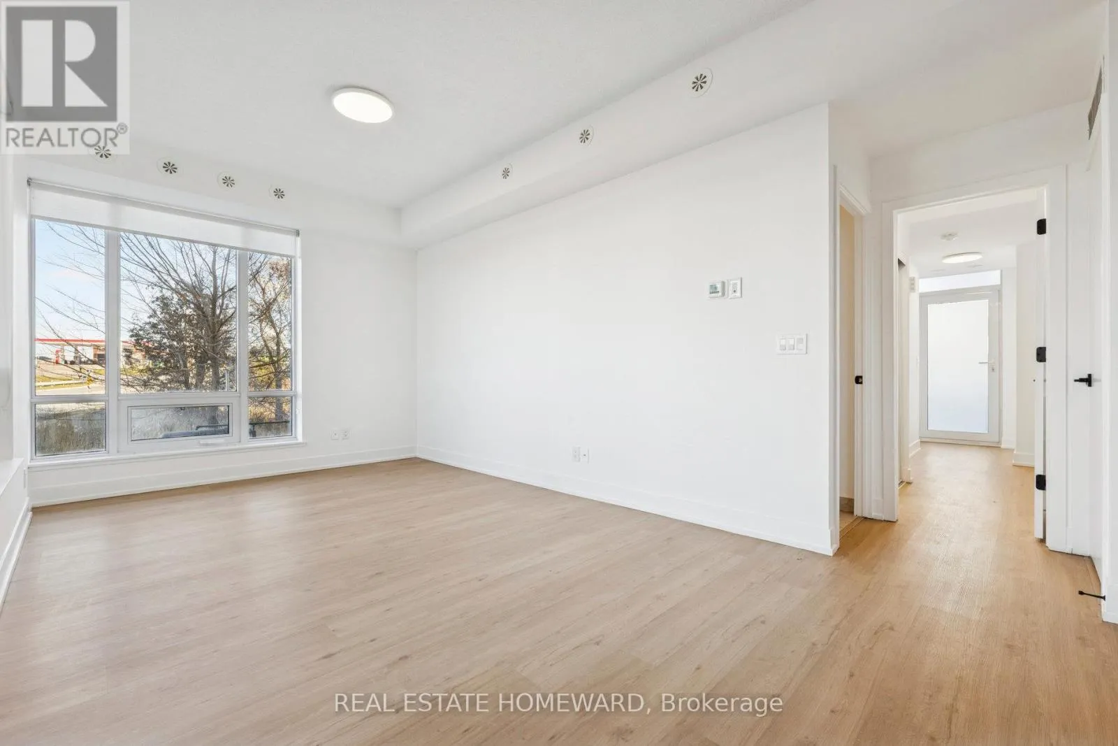 Bright ground-floor one-bedroom suite with two private terraces and dual entrances. Updated interior with an open-concept kitchen, living, and dining area offering direct walk-in access from Bayly Street. South-facing bedroom provides excellent natural light. Steps to Pickering GO, Highway401, restaurants, cafés, parks, and trails. Includes parking, locker, and full access to building amenities: outdoor pool and hot tub, sauna, gym,