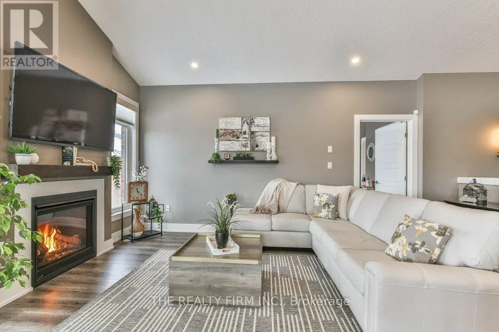 Welcome to this beautifully designed former model brick bungalow offering the perfect blend of style, comfort, and convenience. Featuring 2+1 bedrooms, 3 full bathrooms, and a fully finished lower level, this home is move-in ready and loaded with upgrades throughout.The open-concept main living area showcases an impressive cathedral ceiling, a cozy gas fireplace, and a designer kitchen complete with a