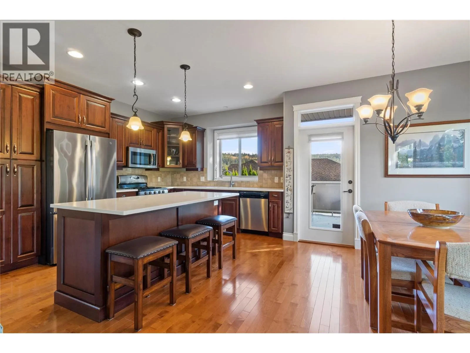 PRIVATE BACKYARD OASIS ON THE FAIRWAY – A Rare Find!….This beautifully crafted custom home is perfectly positioned on the 3rd hole of Shuswap Lake Golf Course. The open-concept design showcases a chef’s kitchen with quartz countertops, large island, ample cabinetry, stainless steel appliances, and a gas stove. The living room exudes warmth with vaulted ceilings, hardwood floors, and a