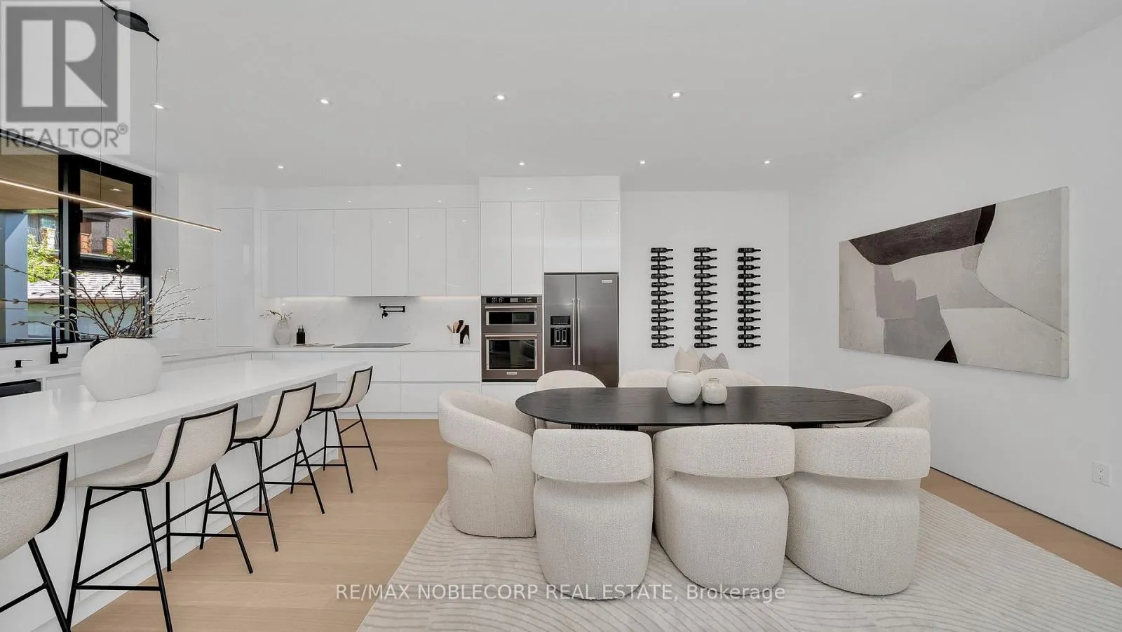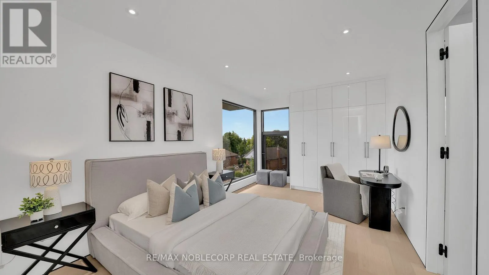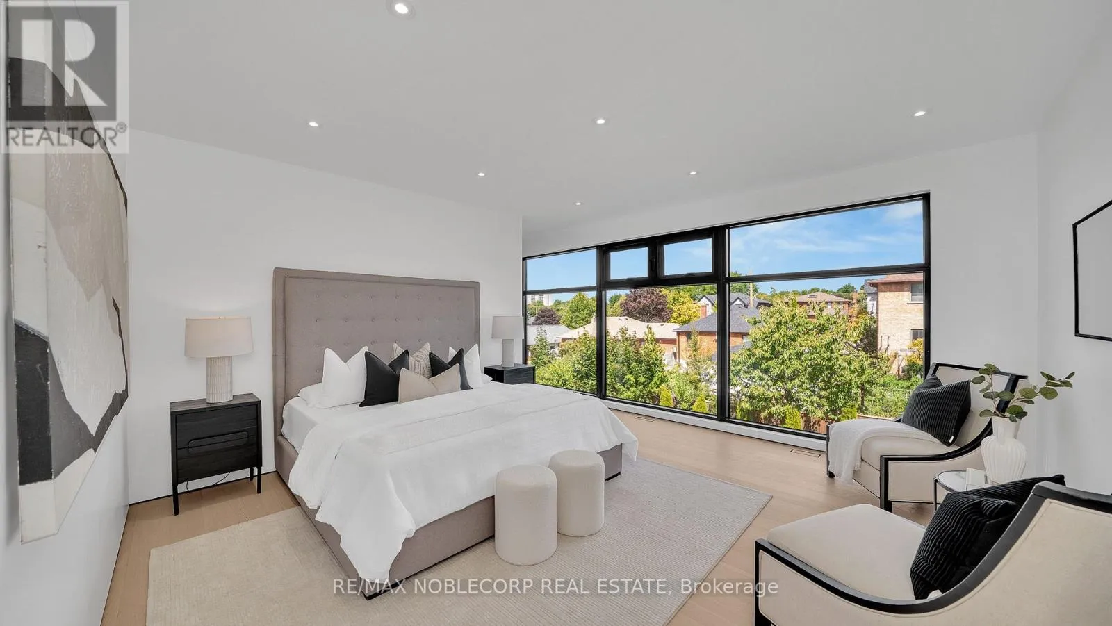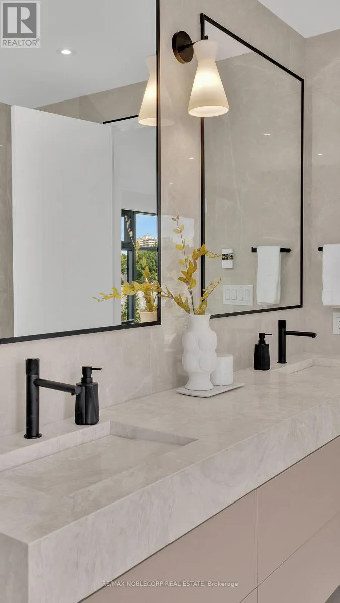 A modern contemporary masterpiece at 16 Deevale Rd, this custom-built residence offers over 4,500 sq. ft. of livable space with 4+2 bedrooms and 5 bathrooms. Designed with soaring ceilings and floor-to-ceiling windows, the home features an expansive rear wall of glass with oversized sliding doors opening to a spacious composite patio. The sleek interior is defined by white oak floors,